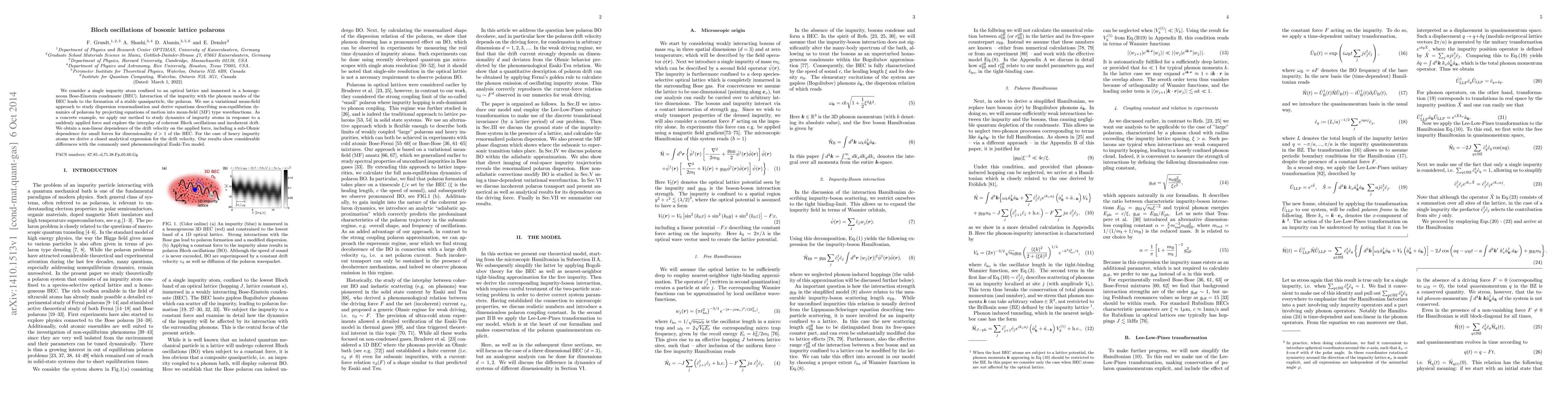 We consider a single impurity atom confined to an optical lattice and immersed in a homogeneous Bose-Einstein condensate (BEC). Interaction of the impurity with the phonon modes of the BEC leads to the formation of a stable quasiparticle, the polaron. We use a variational mean-field approach to study dispersion renormalization and derive equations describing non-equilibrium dynamics of polarons by projecting equations of motion into mean-field (MF) type wavefunctions. As a concrete example, we apply our method to study dynamics of impurity atoms in response to a suddenly applied force and explore the interplay of coherent Bloch oscillations and incoherent drift. We obtain a non-linear dependence of the drift velocity on the applied force, including a sub-Ohmic dependence for small forces for dimensionality d>1 of the BEC. For the case of heavy impurity atoms we derive a closed analytical expression for the drift velocity. Our results show considerable differences with the commonly used phenomenological Esaki-Tsu model.