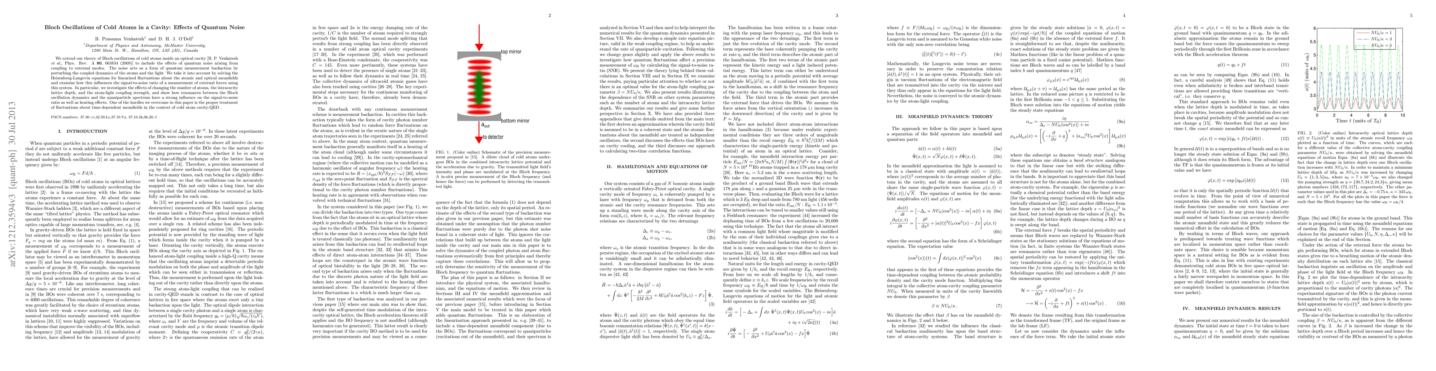 This paper extends the theory of Bloch oscillations in cold atoms within an optical cavity to account for quantum noise effects from external modes. It examines how these fluctuations affect the signal-to-noise ratio in measurements of external forces, highlighting the influence of atom number, lattice depth, and coupling strength on these dynamics.