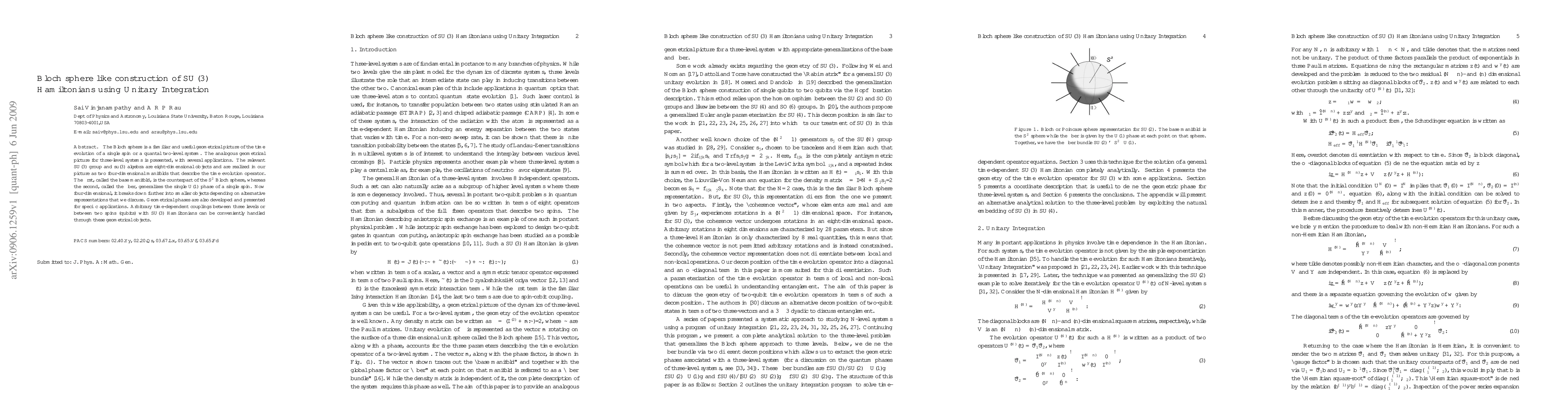 The Bloch sphere is a familiar and useful geometrical picture of the dynamics of a single spin or two-level system's quantum evolution. The analogous geometrical picture for three-level systems is presented, with several applications. The relevant SU(3) group and su(3) algebra are eight-dimensional objects and are realized in our picture as two four-dimensional manifolds describing the time evolution operator. The first, called the base manifold, is the counterpart of the S^2 Bloch sphere, whereas the second, called the fiber, generalizes the single U(1) phase of a single spin. Now four-dimensional, it breaks down further into smaller objects depending on alternative representations that we discuss. Geometrical phases are also developed and presented for specific applications. Arbitrary time-dependent couplings between three levels or between two spins (qubits) with SU(3) Hamiltonians can be conveniently handled through these geometrical objects.