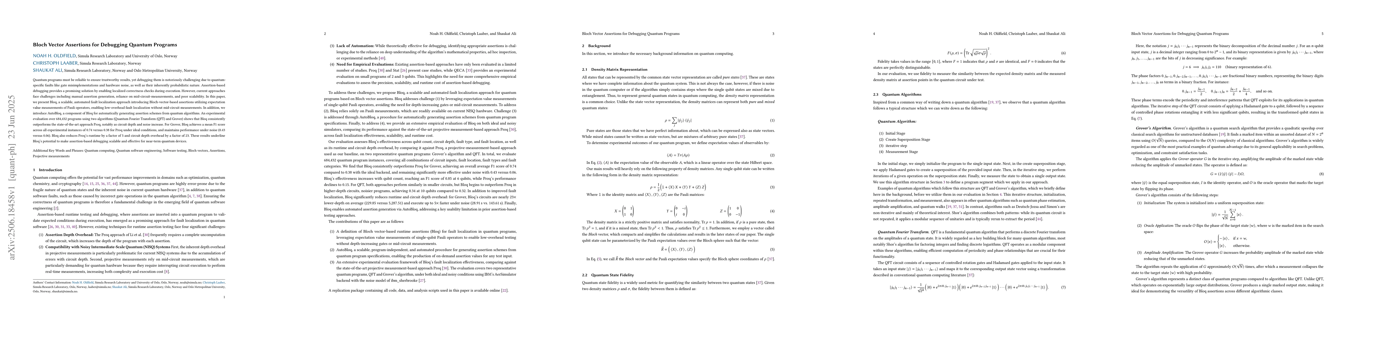 This paper introduces Bloq, a method for debugging quantum programs using Bloch-vector-based assertions. Bloq automates assertion generation and eliminates the need for mid-circuit measurements, outperforming existing methods like Proq in fault localization, scalability, and runtime. Under noisy conditions, Bloq maintains performance, reducing Proq's runtime by a factor of 5 and circuit depth overhead by a factor of 23.