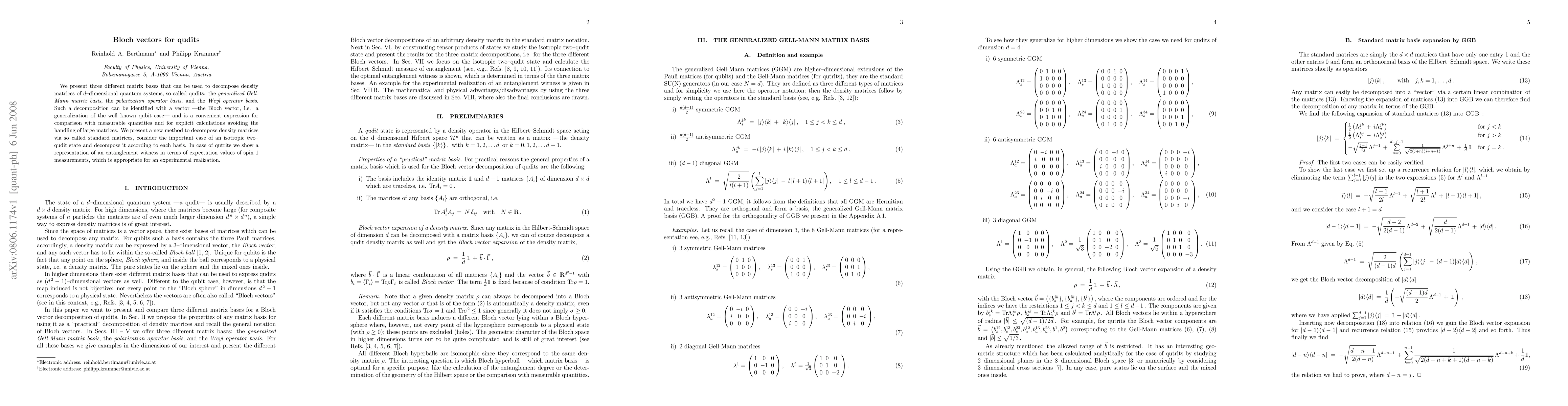 This paper introduces three matrix bases for decomposing density matrices of qudits, leading to generalized Bloch vectors. It provides a method for decomposing these matrices using standard matrices and applies this to an isotropic two-qudit state, demonstrating practical applications for qutrits.
