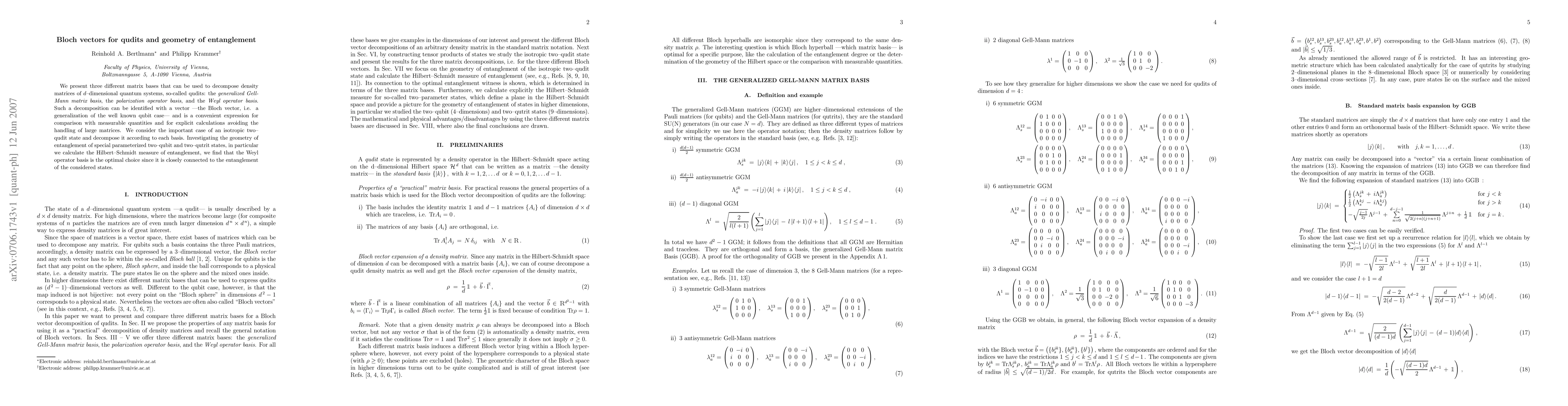 This paper introduces three matrix bases for decomposing density matrices of qudits, generalizing Bloch vectors for higher dimensions. It finds that the Weyl operator basis optimally correlates with the entanglement geometry, particularly for isotropic two-qudit states.