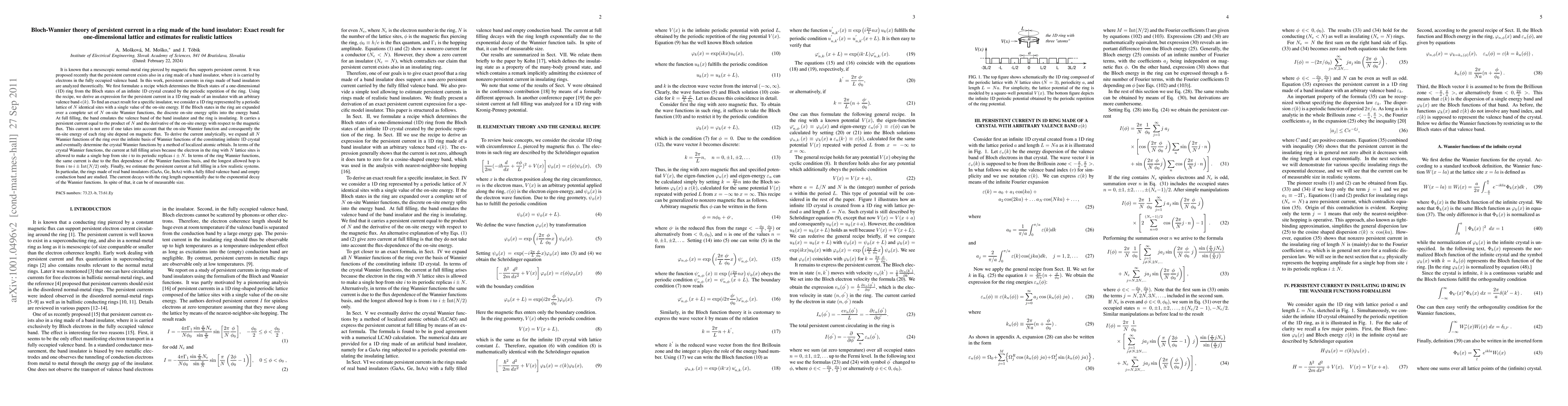 This paper theoretically analyzes persistent currents in rings made from band insulators, deriving an exact expression for a one-dimensional lattice and estimating currents for realistic materials like GaAs, Ge, and InAs. The persistent current is shown to depend on the magnetic flux and is non-zero due to the flux-dependent on-site energy.