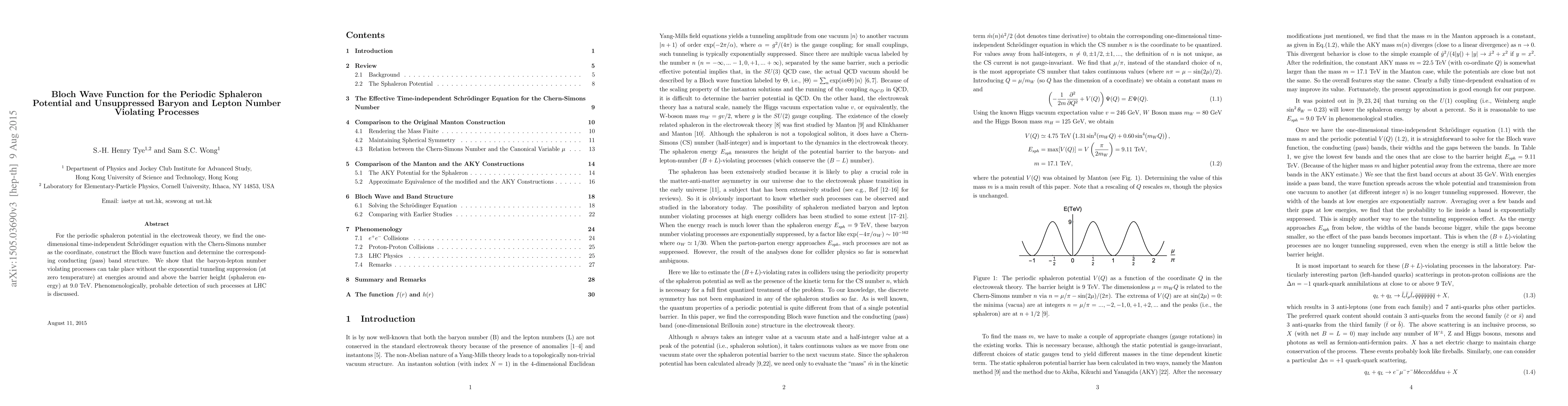 This paper constructs the Bloch wave function for a periodic sphaleron potential in the electroweak theory, revealing a conducting band structure that allows for unsuppressed baryon and lepton number violating processes at energies near 9.0 TeV, potentially detectable at the LHC.
