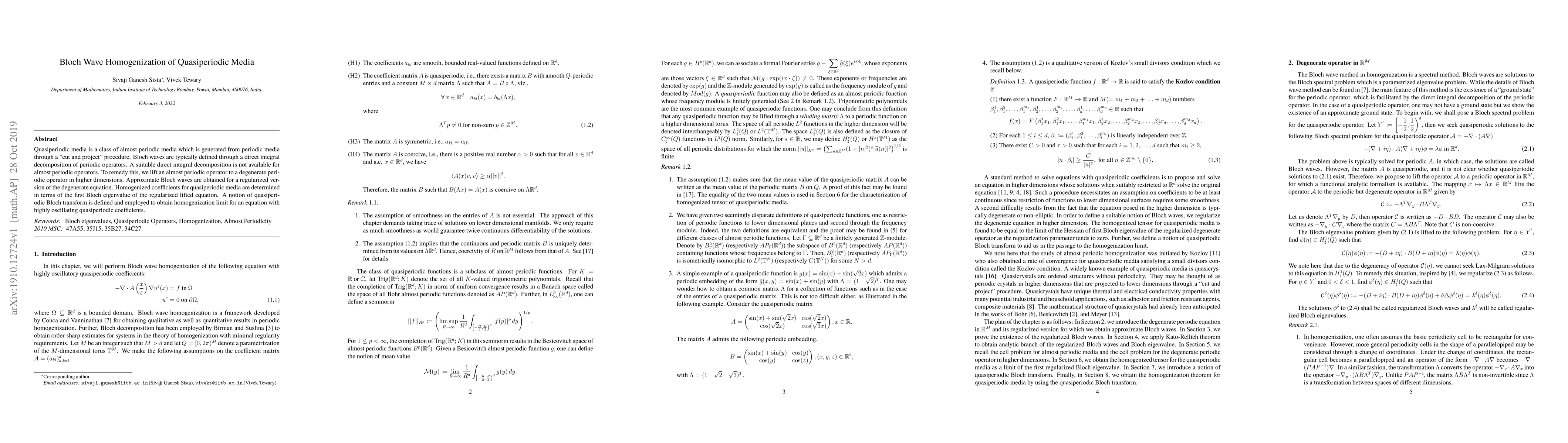 This paper proposes a method to study Bloch waves in quasiperiodic media by lifting almost periodic operators to degenerate periodic operators in higher dimensions. It determines homogenized coefficients through the first Bloch eigenvalue of a regularized lifted equation and introduces a quasiperiodic Bloch transform for homogenization.