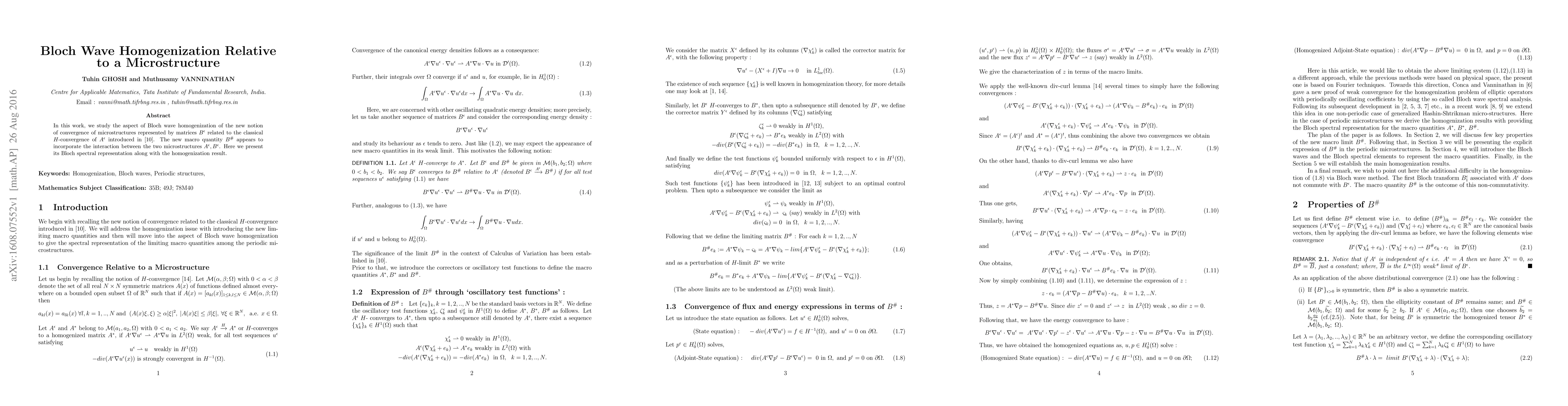 This paper investigates Bloch wave homogenization concerning a novel convergence of microstructures represented by matrices $B^\epsilon$, contrasting with classical $H$-convergence. The new macro quantity $B^{#}$ captures the interaction between microstructures $A^\epsilon$ and $B^\epsilon$, and the study presents its Bloch spectral representation and homogenization result.