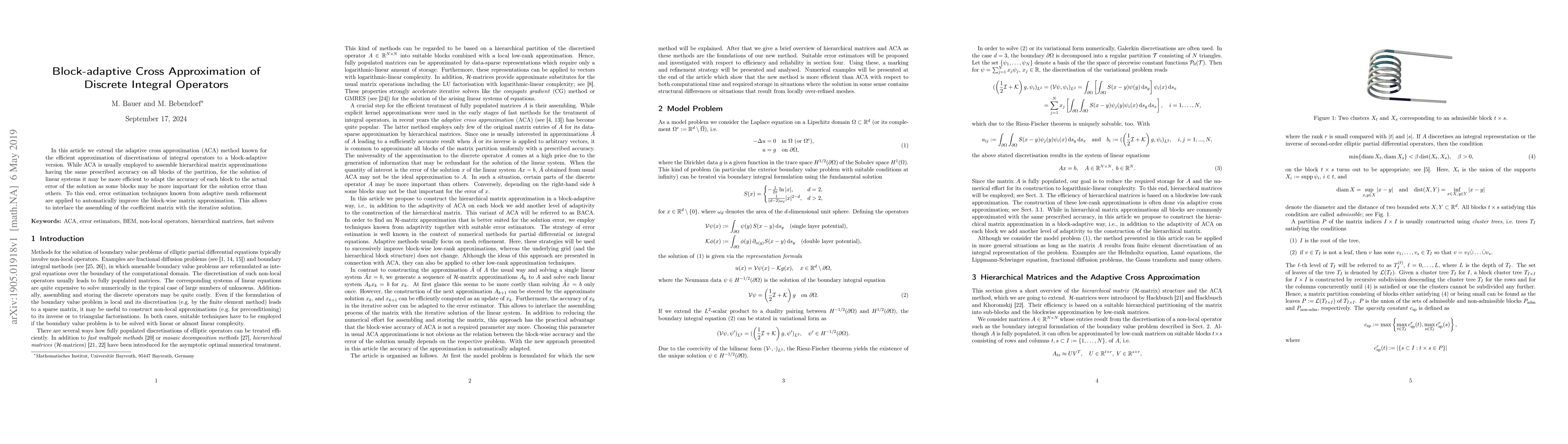 This paper introduces a block-adaptive version of the adaptive cross approximation (ACA) method for efficiently approximating discretized integral operators. It allows varying the accuracy of each block based on error estimation, improving the approximation and enabling iterative solution integration.