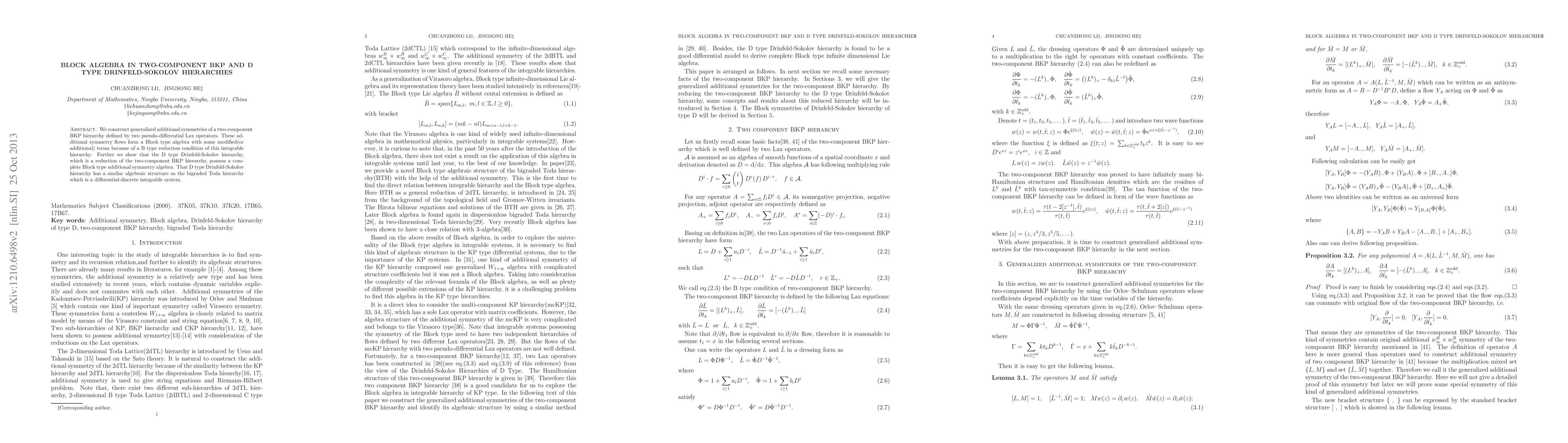 This paper constructs generalized additional symmetries for a two-component BKP hierarchy using pseudo-differential Lax operators, revealing a Block type algebra. It further demonstrates that the D type Drinfeld-Sokolov hierarchy, a reduction of the BKP hierarchy, has a complete Block type additional symmetry algebra similar to the bi-graded Toda hierarchy.