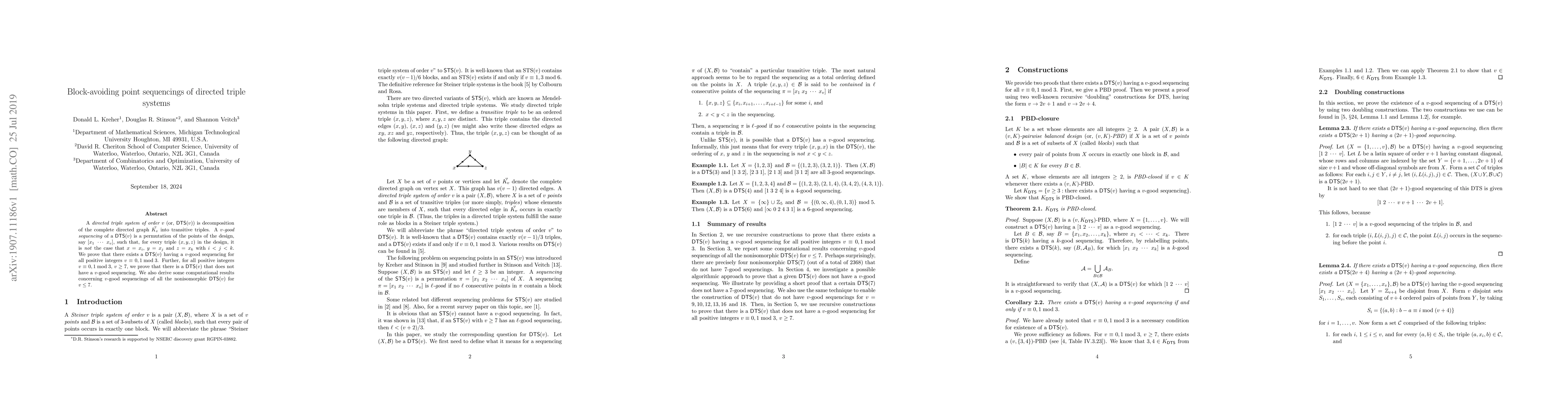This paper investigates block-avoiding point sequencings in directed triple systems (DTS), proving the existence of $v$-good sequencings for all $v \equiv 0,1 \bmod 3$ and showing that no such sequencing exists for $v \equiv 0,1 \bmod 3$ when $v \geq 7$. Computational results for DTS$(v)$ up to $v=7$ are also presented.
