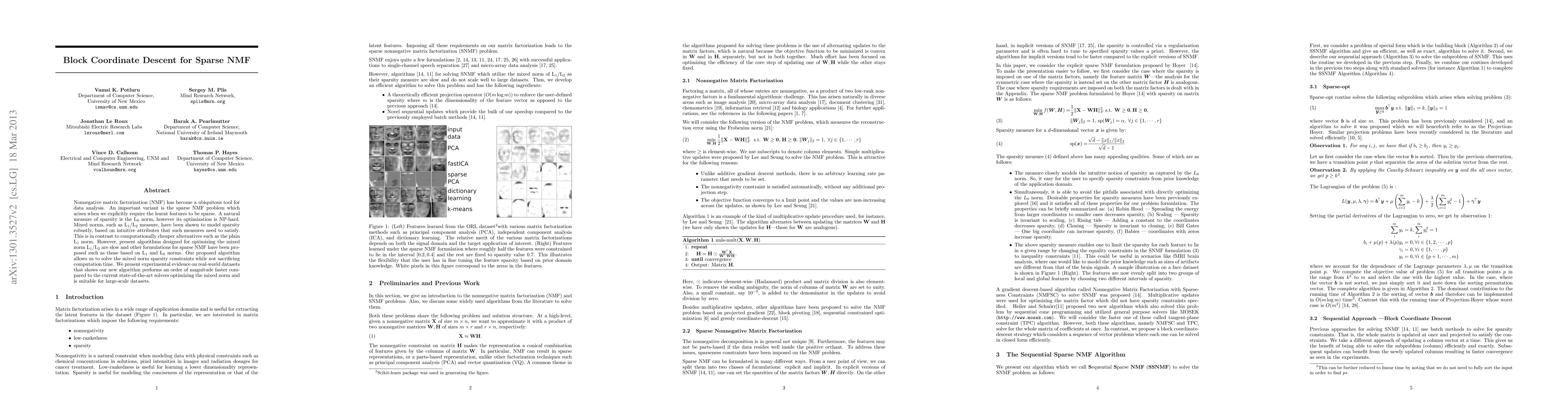 A new algorithm for sparse Nonnegative Matrix Factorization (NMF) is proposed, solving mixed norm sparsity constraints while maintaining computational efficiency, outperforming existing state-of-the-art solvers on real-world datasets.