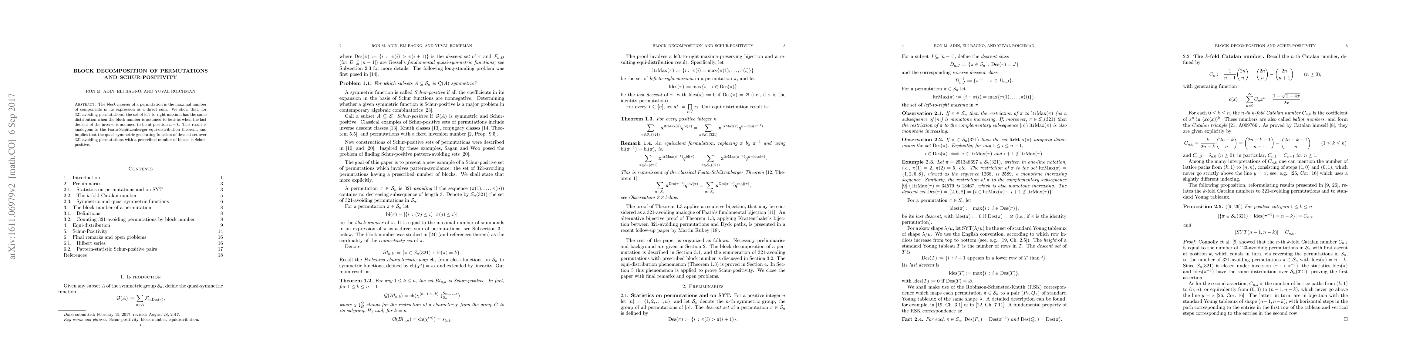 The block number of a permutation is the maximal number of components in its expression as a direct sum. We show that, for $321$-avoiding permutations, the set of left-to-right maxima has the same distribution when the block number is assumed to be $k$ as when the last descent of the inverse is assumed to be at position $n - k$. This result is analogous to the Foata-Sch\"utzenberger equi-distribution theorem, and implies that the quasi-symmetric generating function of descent set over $321$-avoiding permutations with a prescribed number of blocks is Schur-positive.