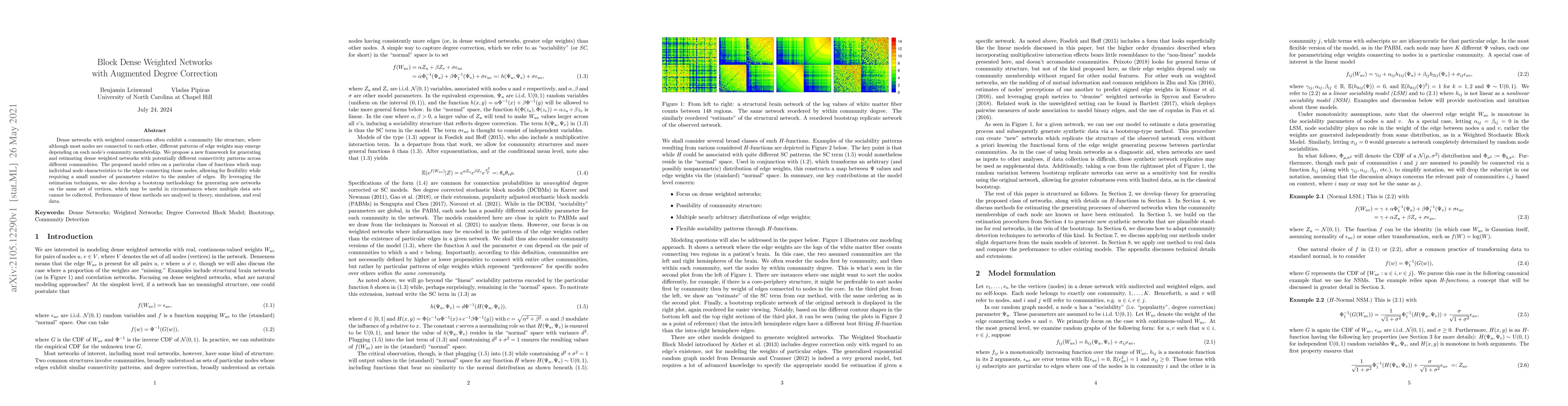 Dense networks with weighted connections often exhibit a community like structure, where although most nodes are connected to each other, different patterns of edge weights may emerge depending on each node's community membership. We propose a new framework for generating and estimating dense weighted networks with potentially different connectivity patterns across different communities. The proposed model relies on a particular class of functions which map individual node characteristics to the edges connecting those nodes, allowing for flexibility while requiring a small number of parameters relative to the number of edges. By leveraging the estimation techniques, we also develop a bootstrap methodology for generating new networks on the same set of vertices, which may be useful in circumstances where multiple data sets cannot be collected. Performance of these methods are analyzed in theory, simulations, and real data.