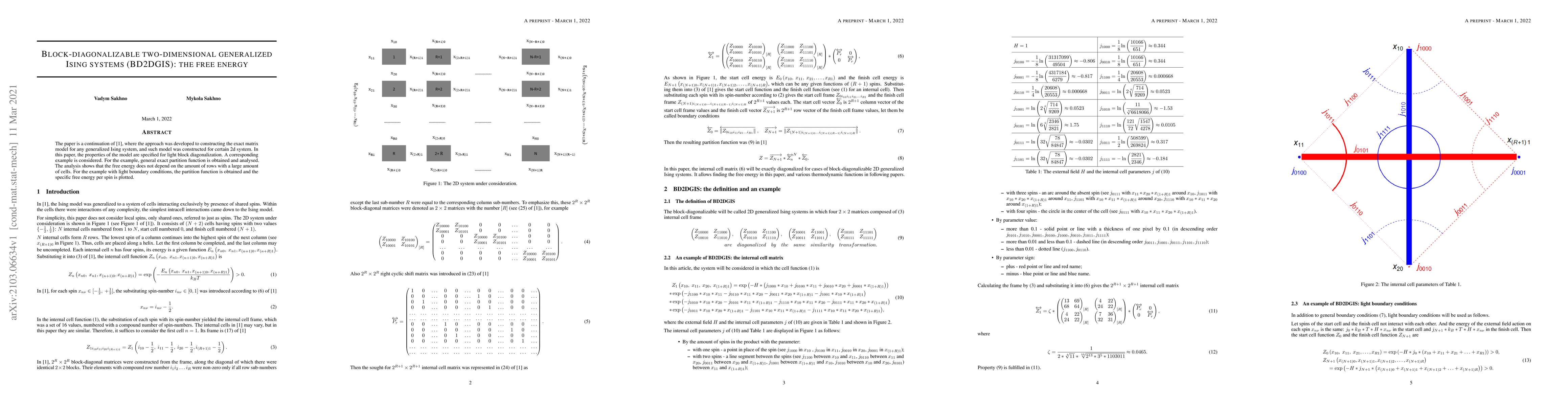 Researchers studied a two-dimensional generalized Ising system with light block diagonalization, finding that the free energy depends only on the number of cells in each row, not their size, and plotted the specific free energy per spin for a corresponding example.