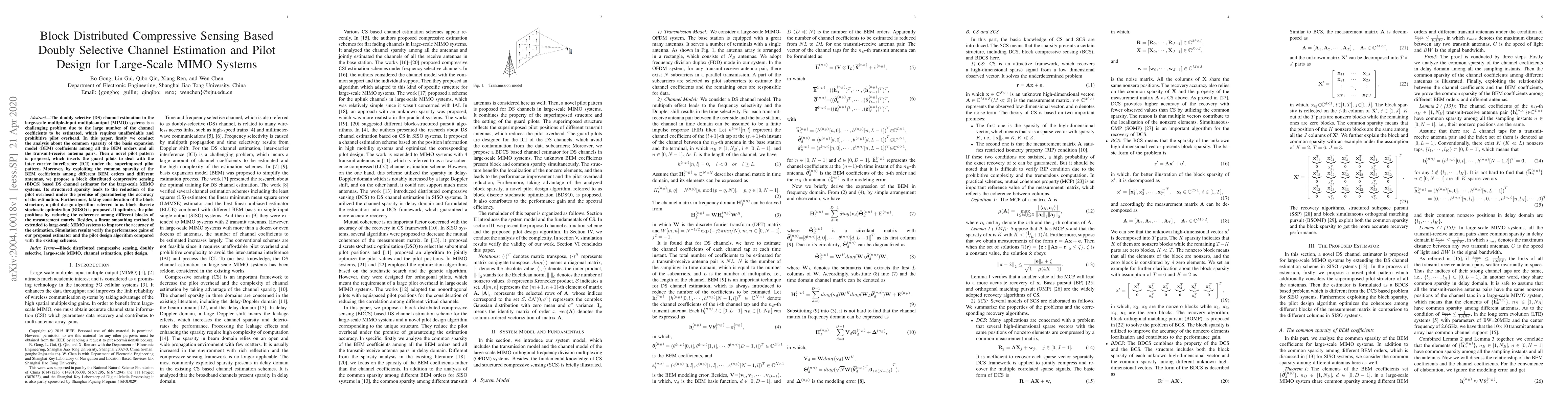 This paper proposes a novel block distributed compressive sensing (BDCS) based doubly selective channel estimator for large-scale MIMO systems, leveraging common sparsity to reduce pilot overhead. It also introduces a pilot design algorithm, block discrete stochastic optimization (BDSO), to optimize pilot positions and minimize interference, achieving improved estimation accuracy.