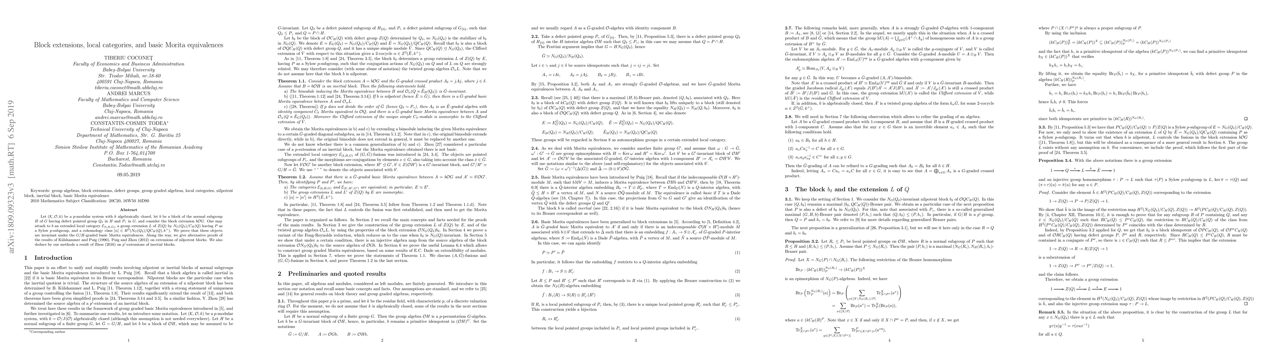 This paper studies the invariance of extended local categories, group extensions, and cohomology classes under $G/H$-graded basic Morita equivalences for $p$-modular systems. It provides alternative proofs for results on nilpotent block extensions and deduces a result on $p'$-extensions of inertial blocks.