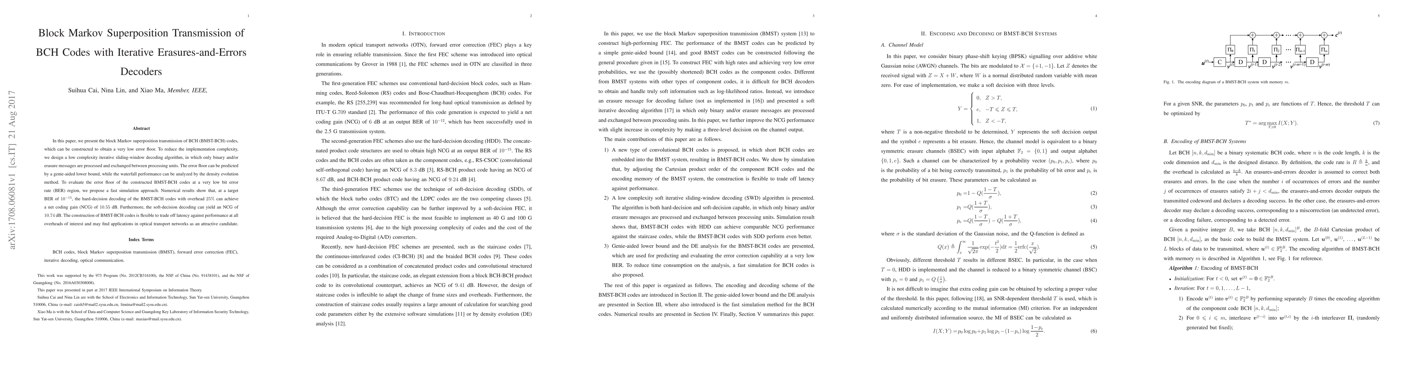 This paper introduces block Markov superposition transmission of BCH codes (BMST-BCH) with low complexity iterative decoding algorithms, achieving a very low error floor and high net coding gain. The proposed method is flexible and suitable for optical transport networks.