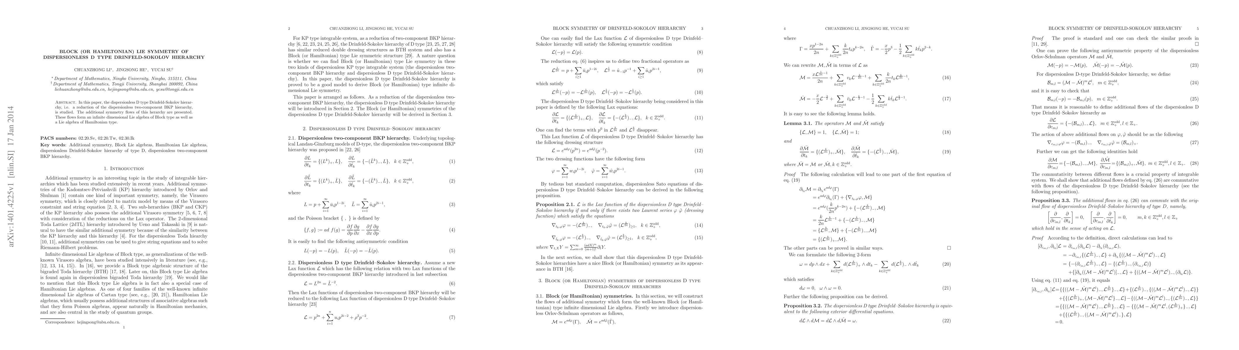 This paper investigates the dispersionless D type Drinfeld-Sokolov hierarchy, revealing its additional symmetry flows. These flows constitute an infinite-dimensional Lie algebra of both Block and Hamiltonian types.