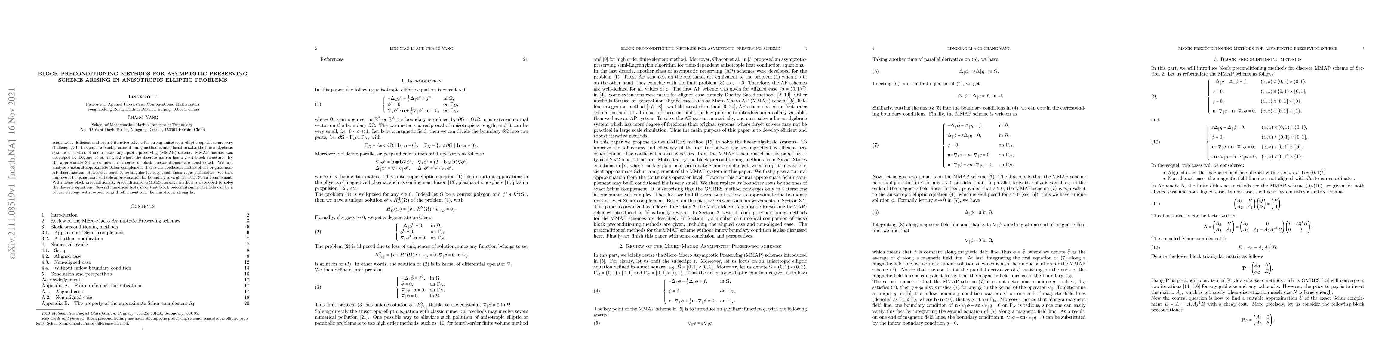 This paper introduces block preconditioning methods to solve linear algebraic systems from a micro-macro asymptotic-preserving (MMAP) scheme for strong anisotropic elliptic equations. It constructs improved block preconditioners using approximate Schur complements, demonstrating robustness through numerical tests.