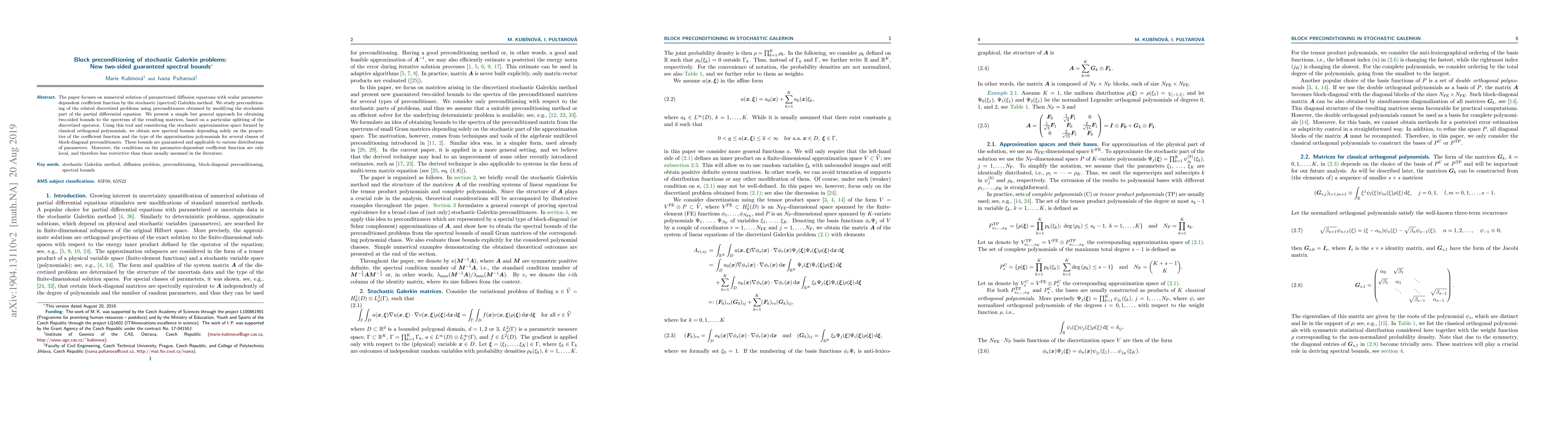 This research paper presents a new method for obtaining guaranteed spectral bounds for stochastic Galerkin problems, allowing for more efficient and accurate numerical solutions of parametrized diffusion equations.