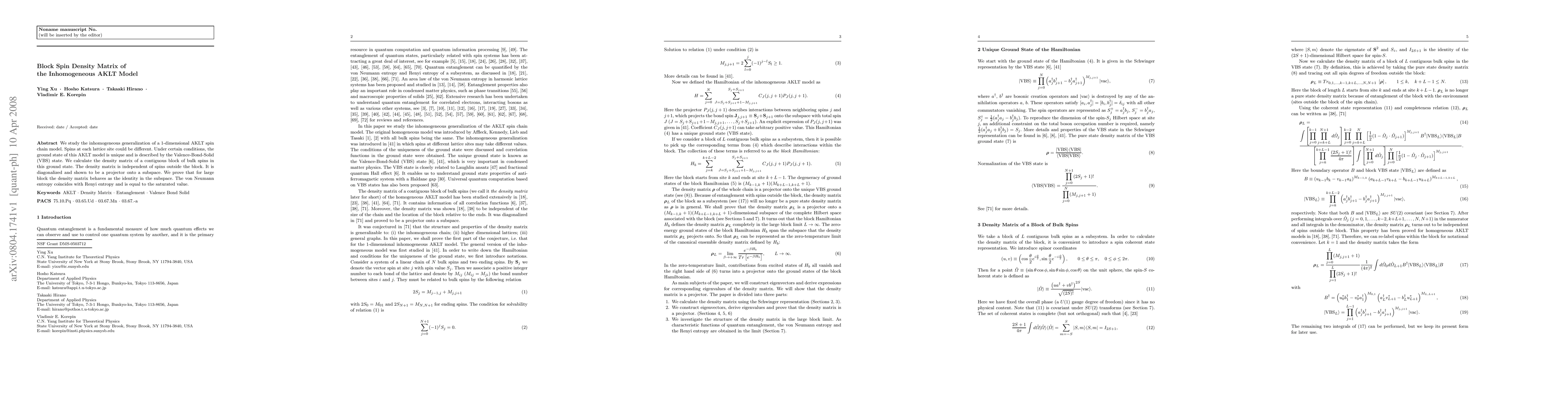 This paper investigates the inhomogeneous version of the 1-dimensional AKLT spin chain, where each site can have different spins. The unique ground state is described by a Valence-Bond-Solid state, and the block spin density matrix of contiguous bulk spins is calculated, showing it behaves as the identity for large blocks and coinciding with Renyi entropy.