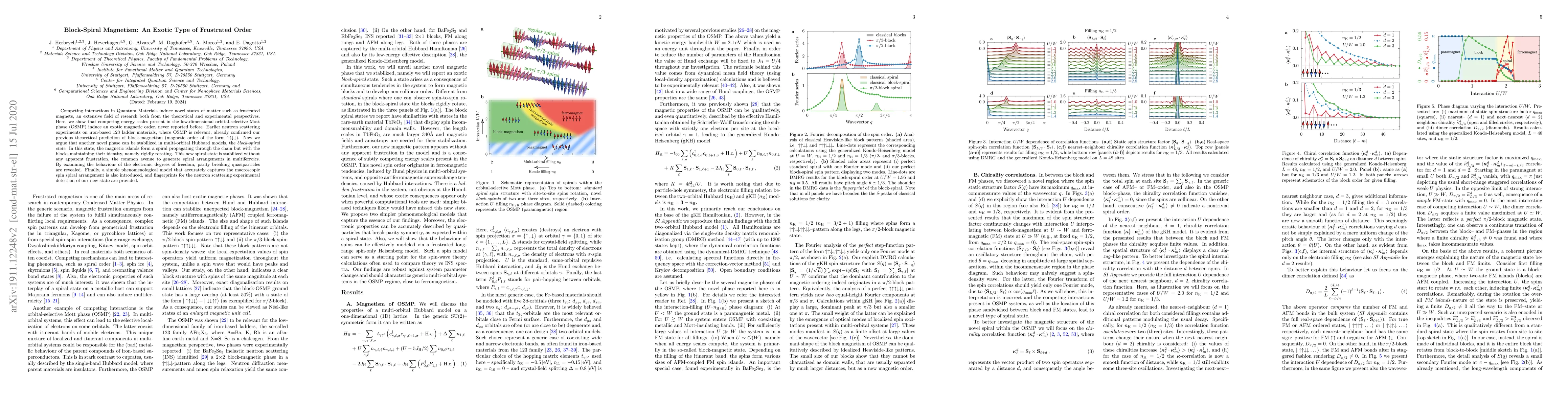 Competing interactions in Quantum Materials induce novel states of matter such as frustrated magnets, an extensive field of research both from the theoretical and experimental perspectives. Here, we show that competing energy scales present in the low-dimensional orbital-selective Mott phase (OSMP) induce an exotic magnetic order, never reported before. Earlier neutron scattering experiments on iron-based 123 ladder materials, where OSMP is relevant, already confirmed our previous theoretical prediction of block-magnetism (magnetic order of the form $\uparrow\uparrow\downarrow\downarrow$). Now we argue that another novel phase can be stabilized in multi-orbital Hubbard models, the {\it block-spiral state}. In this state, the magnetic islands form a spiral propagating through the chain but with the blocks maintaining their identity, namely rigidly rotating. This new spiral state is stabilized without any apparent frustration, the common avenue to generate spiral arrangements in multiferroics. By examining the behaviour of the electronic degrees of freedom, parity breaking quasiparticles are revealed. Finally, a simple phenomenological model that accurately captures the macroscopic spin spiral arrangement is also introduced, and fingerprints for the neutron scattering experimental detection of our new state are provided.