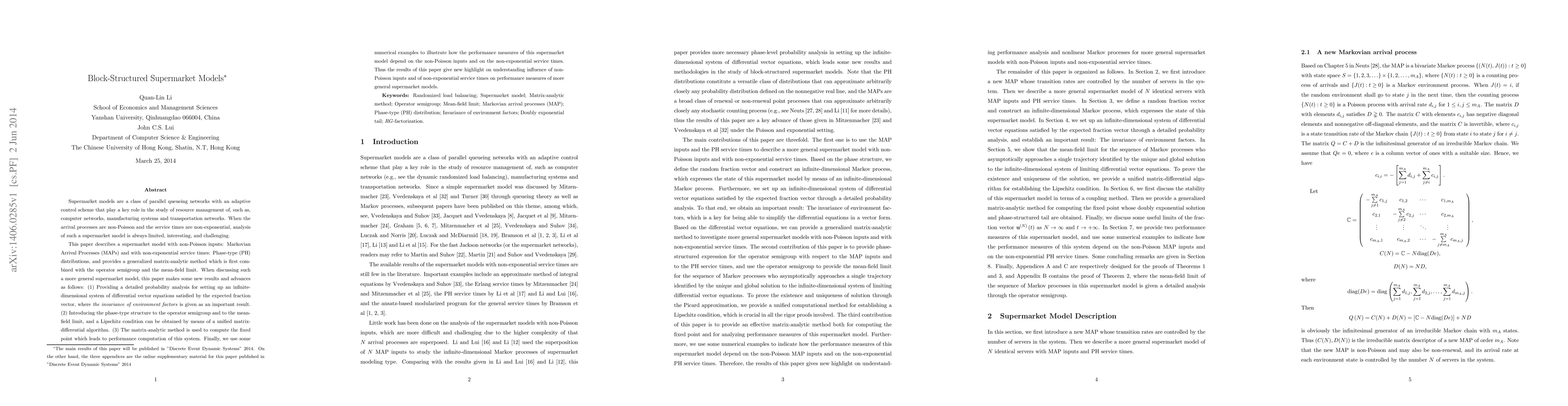 This paper develops a new method to analyze supermarket models with non-Poisson arrival processes and non-exponential service times, enabling the computation of performance measures and understanding their impact on system behavior.