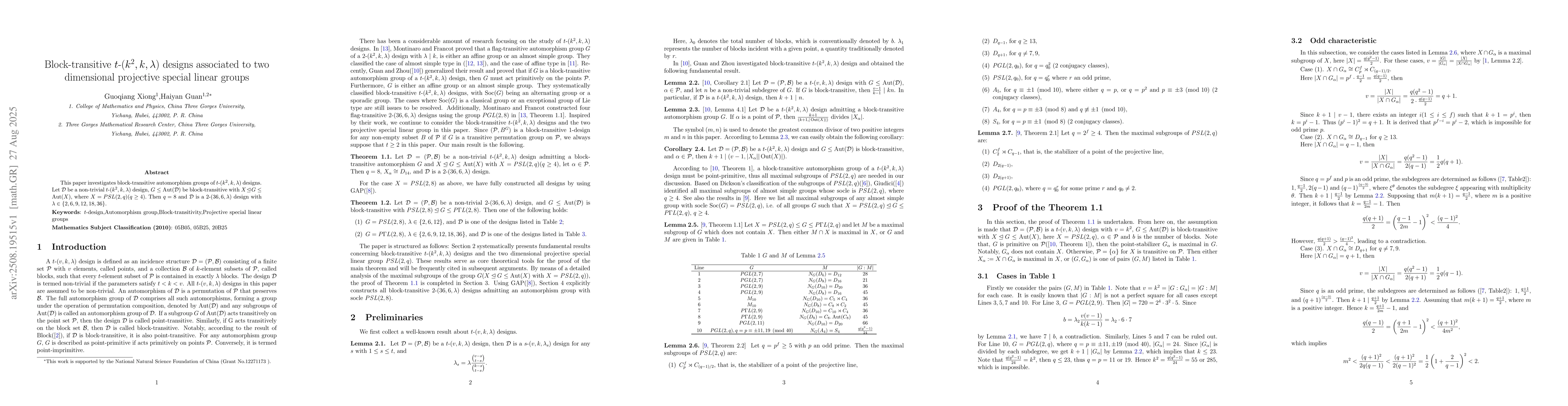 This paper investigates block-transitive automorphism groups of t-(k^2,k,\lambda) designs. Let D be a non-trivial t-(k^2,k,\lambda) design, G \leq \Aut(D) be block-transitive with X\unlhd G\leq \Aut(X), where X = PSL(2,q)(q\geq4). Then q = 8 and D is a 2-(36,6,\lambda) design with \lambda \in \{2,6,9,12,18,36\}.