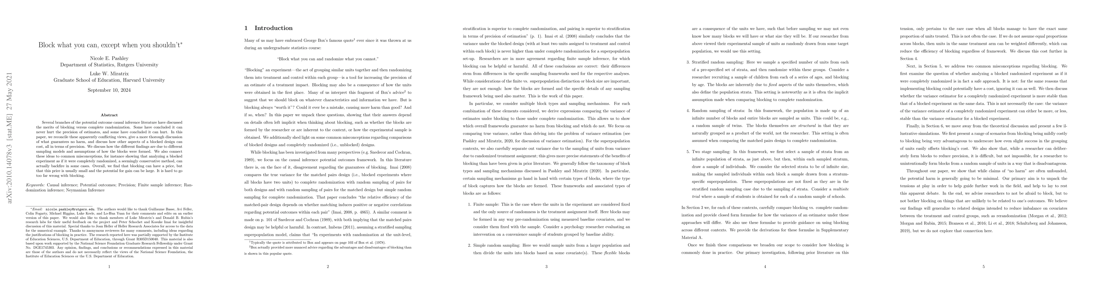 This paper reconciles conflicting views on blocking versus complete randomization in experimental design, finding that blocking can have small precision costs but often offers large benefits.