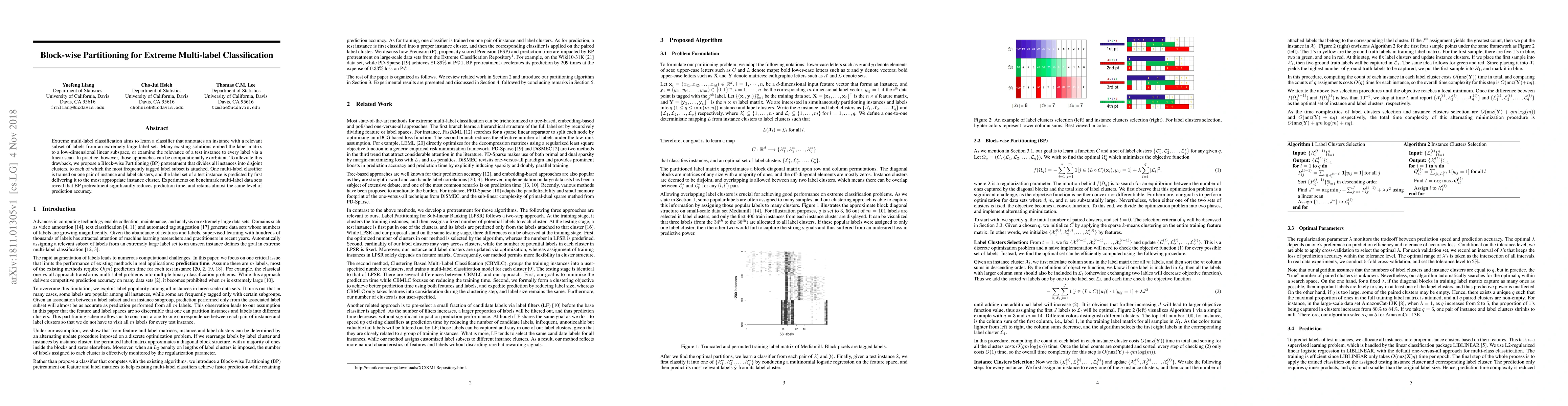 Extreme multi-label classification aims to learn a classifier that annotates an instance with a relevant subset of labels from an extremely large label set. Many existing solutions embed the label matrix to a low-dimensional linear subspace, or examine the relevance of a test instance to every label via a linear scan. In practice, however, those approaches can be computationally exorbitant. To alleviate this drawback, we propose a Block-wise Partitioning (BP) pretreatment that divides all instances into disjoint clusters, to each of which the most frequently tagged label subset is attached. One multi-label classifier is trained on one pair of instance and label clusters, and the label set of a test instance is predicted by first delivering it to the most appropriate instance cluster. Experiments on benchmark multi-label data sets reveal that BP pretreatment significantly reduces prediction time, and retains almost the same level of prediction accuracy.