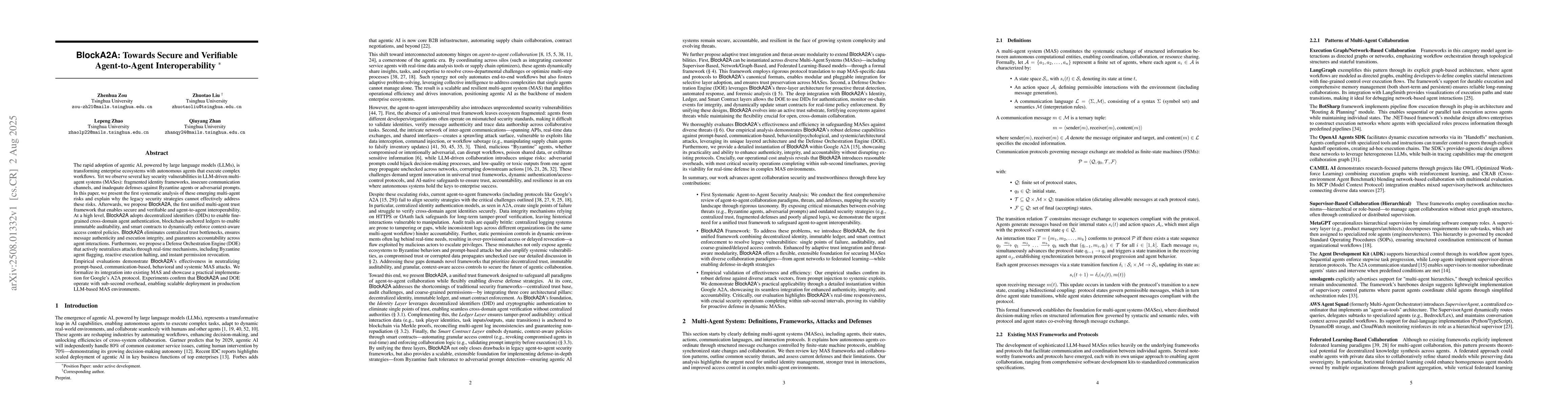 The rapid adoption of agentic AI, powered by large language models (LLMs), is transforming enterprise ecosystems with autonomous agents that execute complex workflows. Yet we observe several key security vulnerabilities in LLM-driven multi-agent systems (MASes): fragmented identity frameworks, insecure communication channels, and inadequate defenses against Byzantine agents or adversarial prompts. In this paper, we present the first systematic analysis of these emerging multi-agent risks and explain why the legacy security strategies cannot effectively address these risks. Afterwards, we propose BlockA2A, the first unified multi-agent trust framework that enables secure and verifiable and agent-to-agent interoperability. At a high level, BlockA2A adopts decentralized identifiers (DIDs) to enable fine-grained cross-domain agent authentication, blockchain-anchored ledgers to enable immutable auditability, and smart contracts to dynamically enforce context-aware access control policies. BlockA2A eliminates centralized trust bottlenecks, ensures message authenticity and execution integrity, and guarantees accountability across agent interactions. Furthermore, we propose a Defense Orchestration Engine (DOE) that actively neutralizes attacks through real-time mechanisms, including Byzantine agent flagging, reactive execution halting, and instant permission revocation. Empirical evaluations demonstrate BlockA2A's effectiveness in neutralizing prompt-based, communication-based, behavioral and systemic MAS attacks. We formalize its integration into existing MAS and showcase a practical implementation for Google's A2A protocol. Experiments confirm that BlockA2A and DOE operate with sub-second overhead, enabling scalable deployment in production LLM-based MAS environments.
