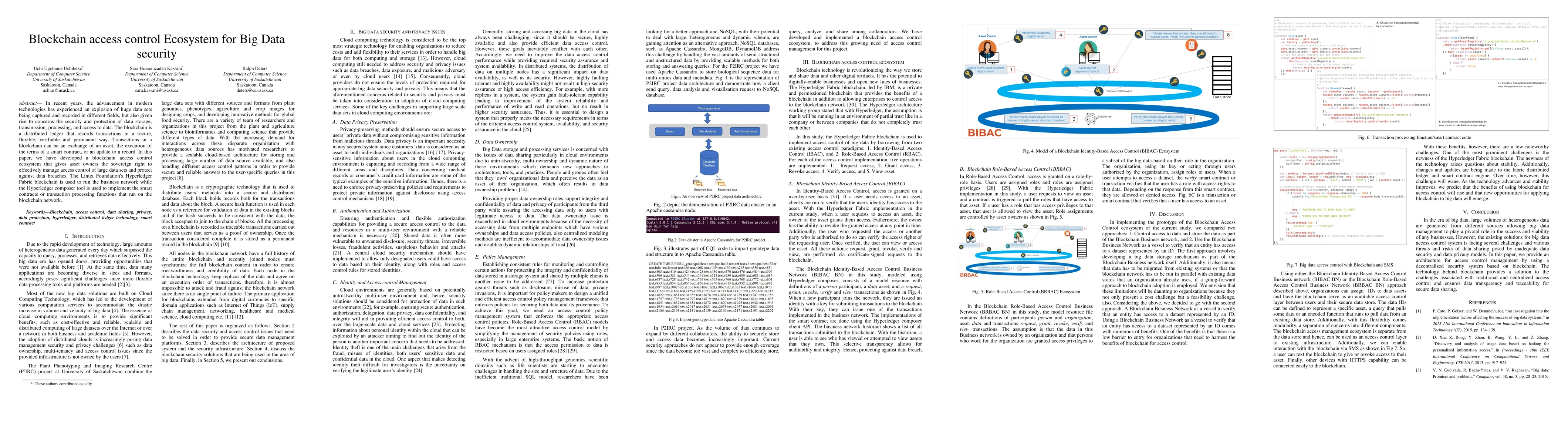 This paper proposes a blockchain-based access control ecosystem for securing big data, leveraging the Hyperledger Fabric blockchain and Hyperledger Composer to enable asset owners to manage data access and protect against breaches. The system aims to provide secure, flexible, and verifiable data management.
