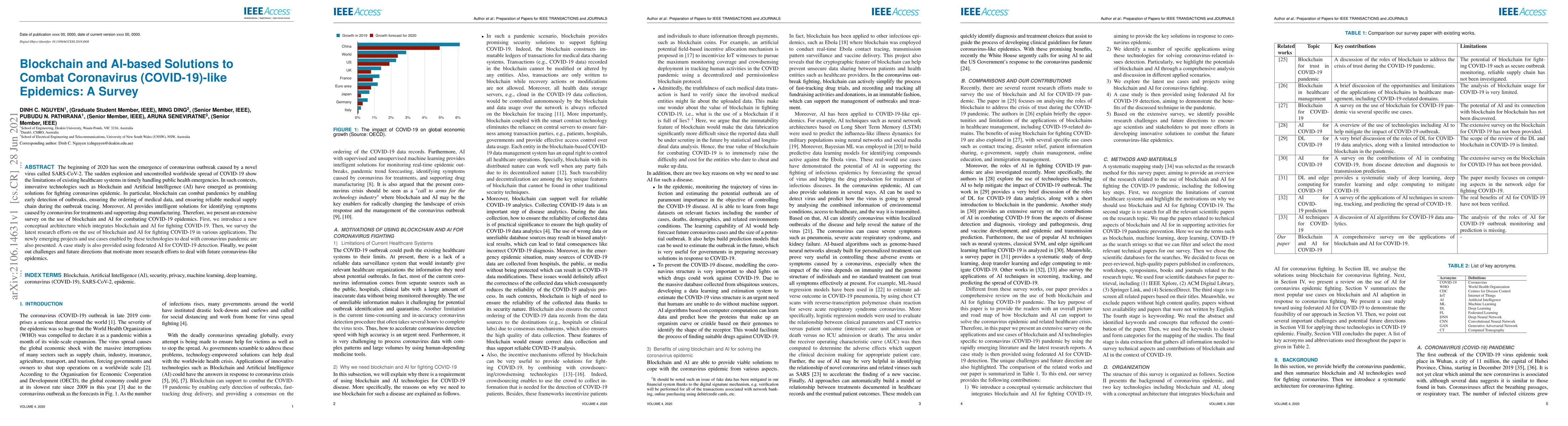 This paper surveys blockchain and AI-based solutions for combating COVID-19, highlighting their roles in early outbreak detection, medical data management, and drug manufacturing. It proposes a conceptual architecture integrating these technologies and discusses emerging projects and case studies, while also identifying challenges and future research directions.