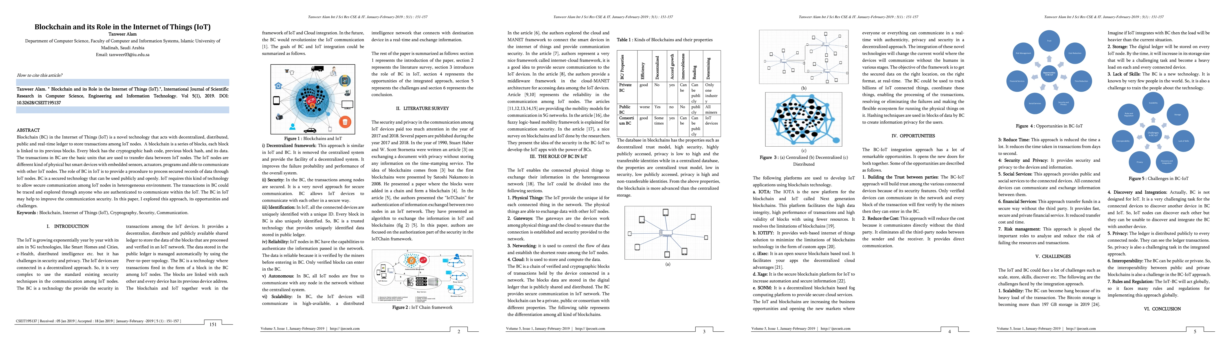 This paper investigates blockchain's role in enhancing secure communication among IoT nodes through decentralized, distributed ledger technology, highlighting its potential to improve data transaction security in heterogeneous environments while also addressing associated challenges.