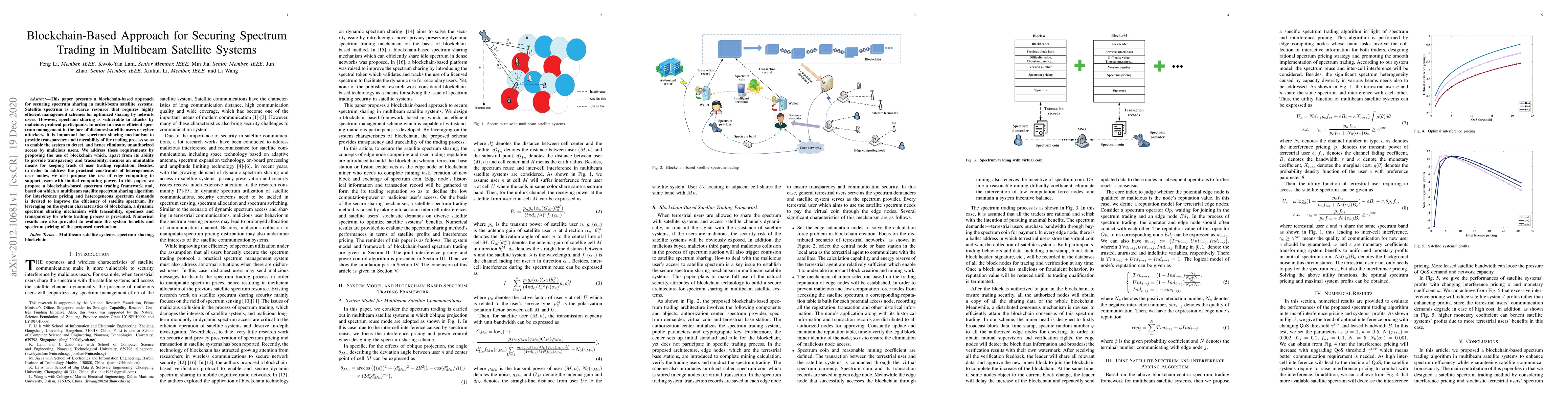 This paper proposes a blockchain-based framework to secure spectrum trading in multibeam satellite systems, ensuring transparency and traceability to prevent unauthorized access. It integrates edge computing to accommodate heterogeneous user nodes, and evaluates the system's efficiency through numerical results.
