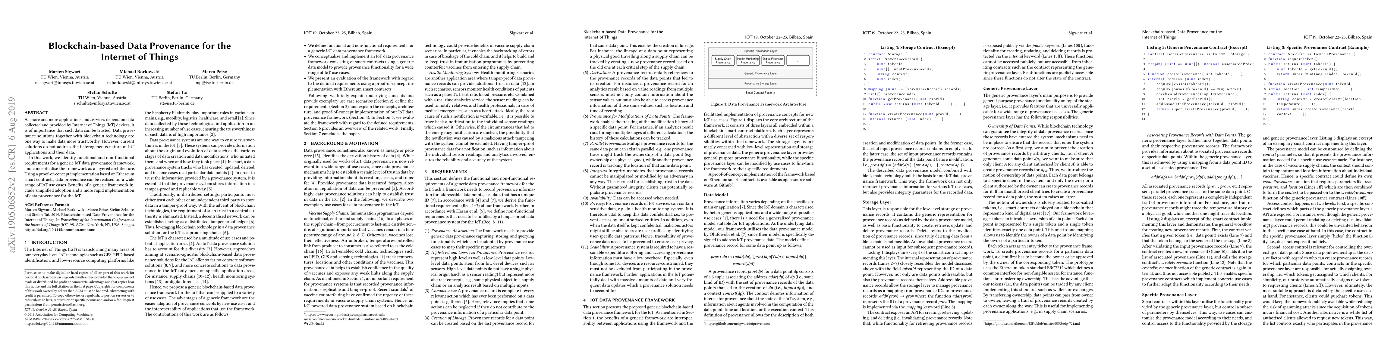 This paper proposes a blockchain-based framework for IoT data provenance, addressing the lack of solutions for heterogeneous IoT applications. It introduces a layered architecture and demonstrates a proof-of-concept using Ethereum smart contracts, aiming to enhance data trustworthiness and facilitate rapid implementation across various IoT use cases.
