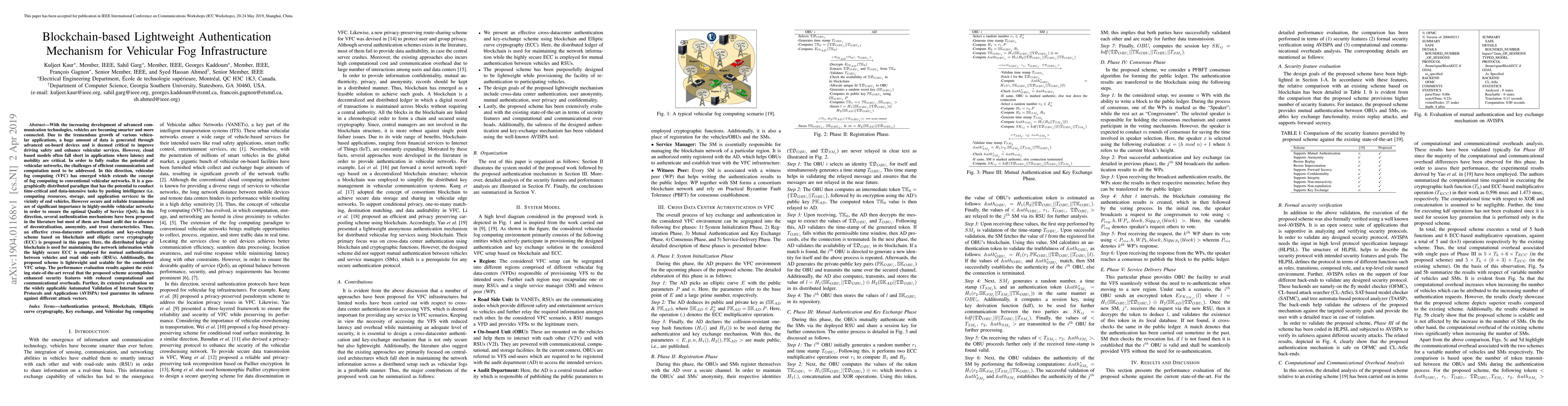 This paper proposes a blockchain-based lightweight authentication mechanism for vehicular fog computing to enhance security and reliability in highly-mobile vehicular networks. The scheme utilizes blockchain for decentralized network information management and elliptic curve cryptography for secure mutual authentication between vehicles and roadside units.