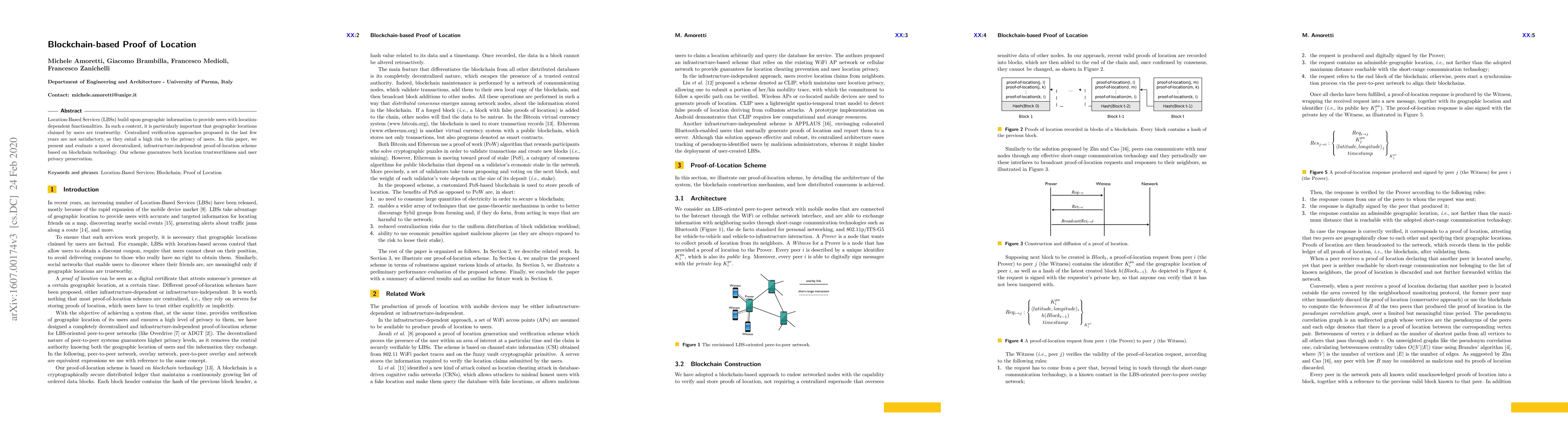 This paper introduces a decentralized blockchain-based proof-of-location scheme to ensure trustworthy geographic location claims while maintaining user privacy, addressing the limitations of centralized verification methods. The proposed scheme leverages blockchain technology to achieve both location authenticity and privacy preservation.
