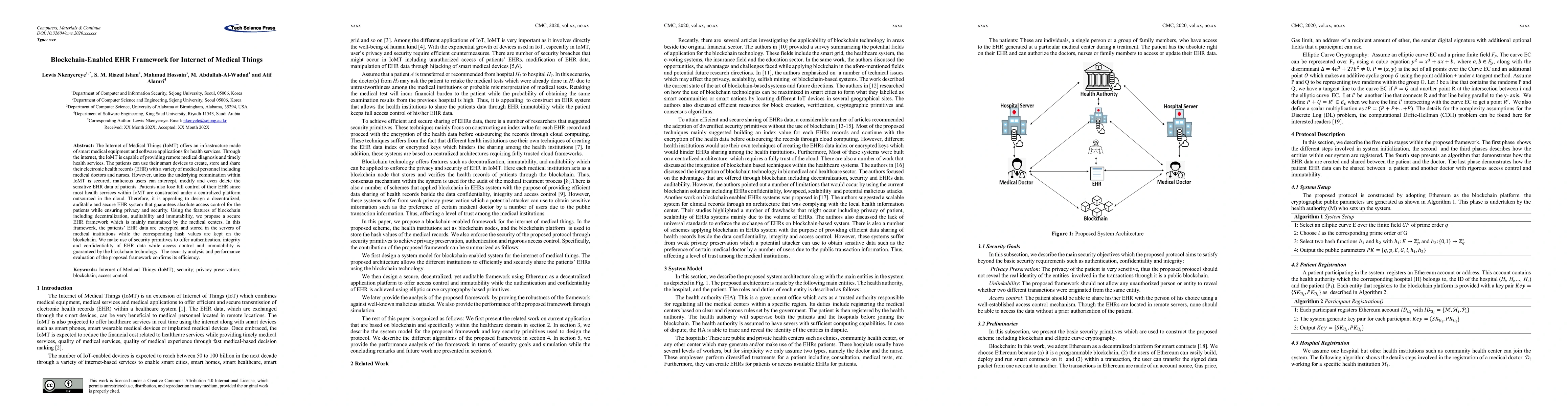 The paper proposes a blockchain-enabled EHR framework for the Internet of Medical Things (IoMT) to secure and decentralize electronic health records, ensuring patient control, privacy, and data integrity through encryption and blockchain-based access control and immutability. Security analysis and performance evaluation confirm the framework's efficiency.