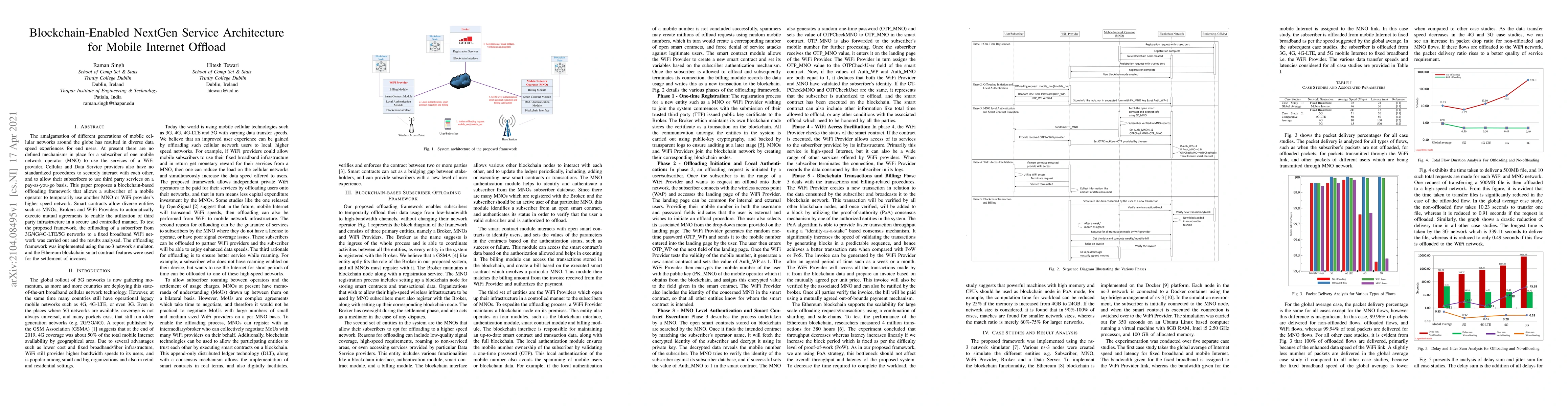 The amalgamation of different generations of mobile cellular networks around the globe has resulted in diverse data speed experiences for end users. At present there are no defined mechanisms in place for a subscriber of one mobile network operator (MNO) to use the services of a WiFi provider. Cellular and Data Service providers also have no standardized procedures to securely interact with each other, and to allow their subscribers to use third party services on a pay-as-you-go basis. This paper proposes a blockchain-based offloading framework that allows a subscriber of a mobile operator to temporarily use another MNO or WiFi provider's higher speed network. Smart contracts allow diverse entities such as MNOs, Brokers and WiFi Providers to automatically execute mutual agreements to enable the utilization of third party infrastructure in a secure and controlled manner. To test the proposed framework, the offloading of a subscriber from 3G/4G/4G-LTE/5G networks to a fixed broadband WiFi network was carried out and the results analyzed. The offloading framework was implemented using the ns-3 network simulator, and the Ethereum blockchain smart contract features were used for the settlement of invoices.