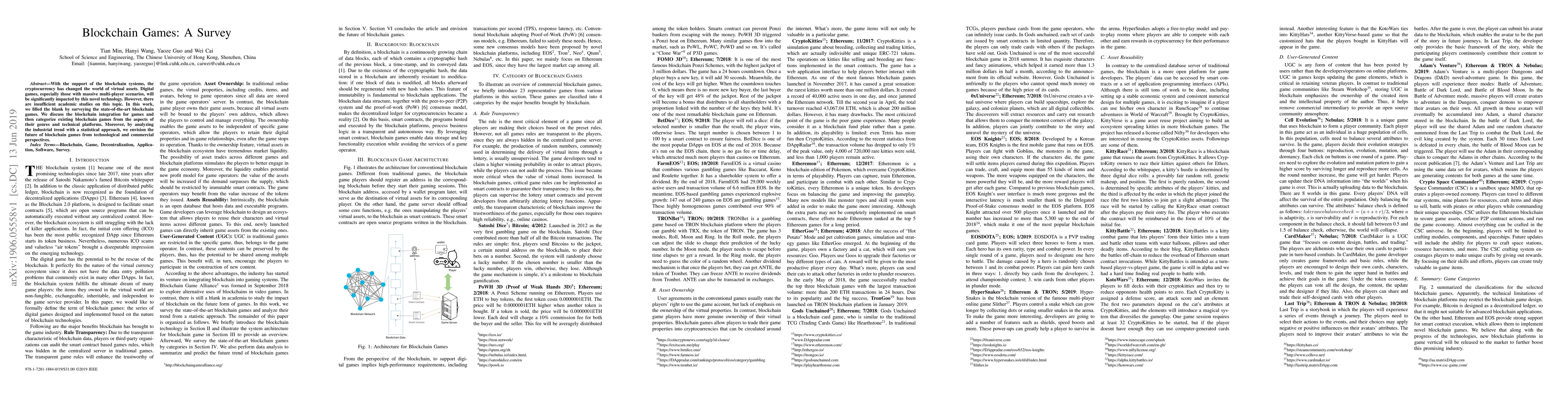 This survey paper explores blockchain games, categorizing them by genre and platform, and analyzing their technological and commercial future trends, highlighting a gap in academic studies filled by this research.