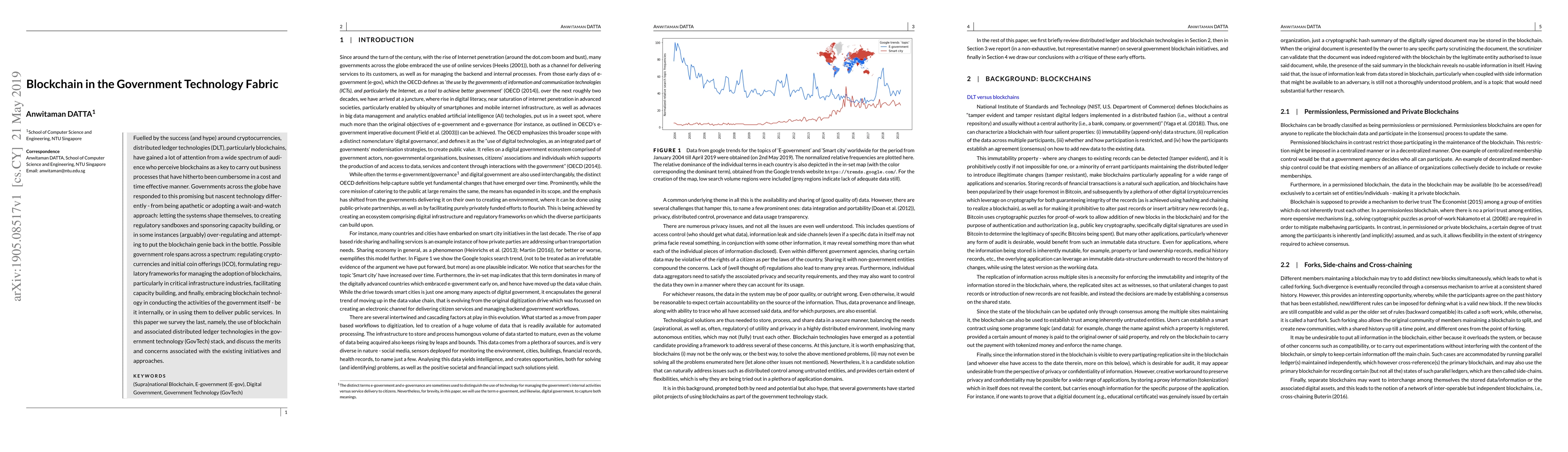 Fuelled by the success (and hype) around cryptocurrencies, distributed ledger technologies (DLT), particularly blockchains, have gained a lot of attention from a wide spectrum of audience who perceive blockchains as a key to carry out business processes that have hitherto been cumbersome in a cost and time effective manner. Governments across the globe have responded to this promising but nascent technology differently - from being apathetic or adopting a wait-and-watch approach: letting the systems shape themselves, to creating regulatory sandboxes and sponsoring capacity building, or in some instances (arguably) over-regulating and attempting to put the blockchain genie back in the bottle. Possible government role spans across a spectrum: regulating crypto-currencies and initial coin offerings (ICO), formulating regulatory frameworks for managing the adoption of blockchains, particularly in critical infrastructure industries, facilitating capacity building, and finally, embracing blockchain technology in conducting the activities of the government itself - be it internally, or in using them to deliver public services. In this paper we survey the last, namely, the use of blockchain and associated distributed ledger technologies in the government technology (GovTech) stack, and discuss the merits and concerns associated with the existing initiatives and approaches.