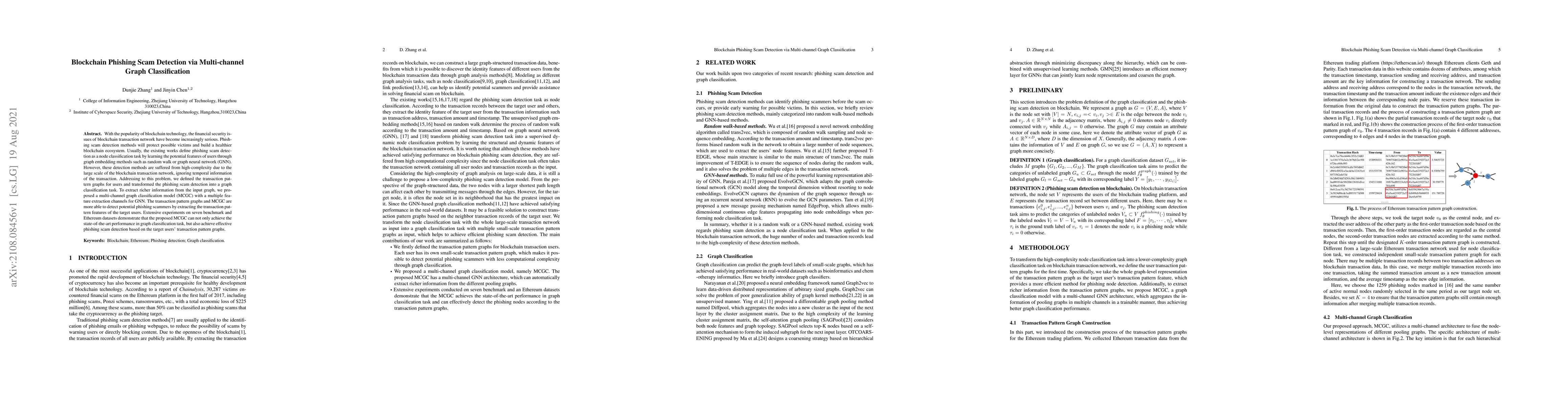 This paper proposes a multi-channel graph classification model (MCGC) to detect phishing scams in blockchain networks by transforming the detection task into a graph classification problem. The MCGC model, utilizing multiple feature extraction channels for graph neural networks, effectively captures transaction pattern features, achieving state-of-the-art performance in detecting potential phishing scammers.