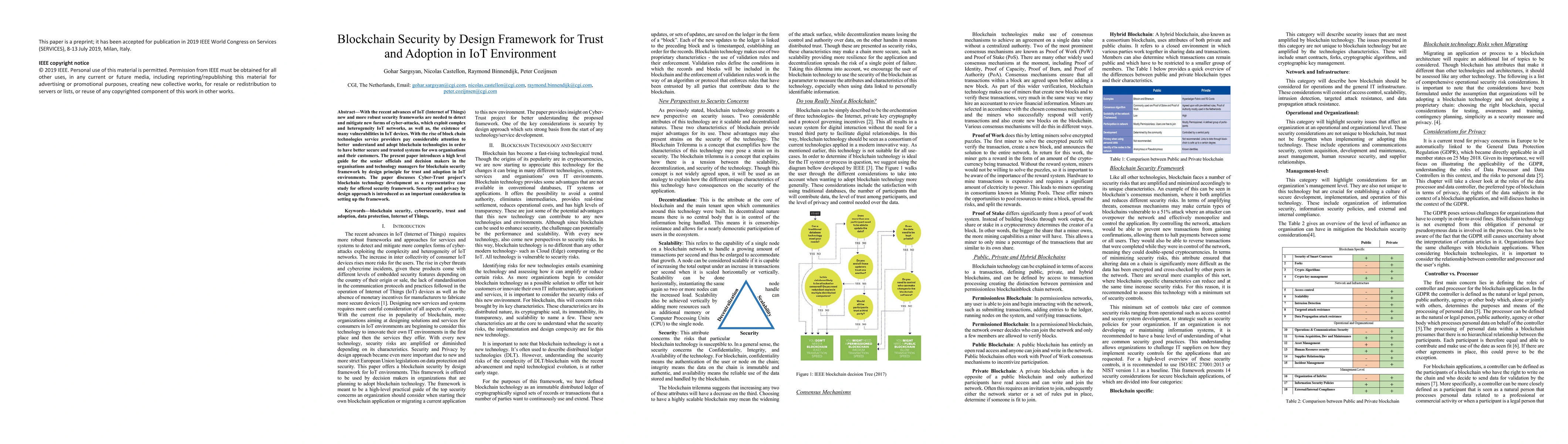 A new blockchain security framework is introduced to improve trust and adoption in IoT environments, focusing on cybersecurity by design principles. The framework provides a guide for organizations to develop secure systems using blockchain technology.