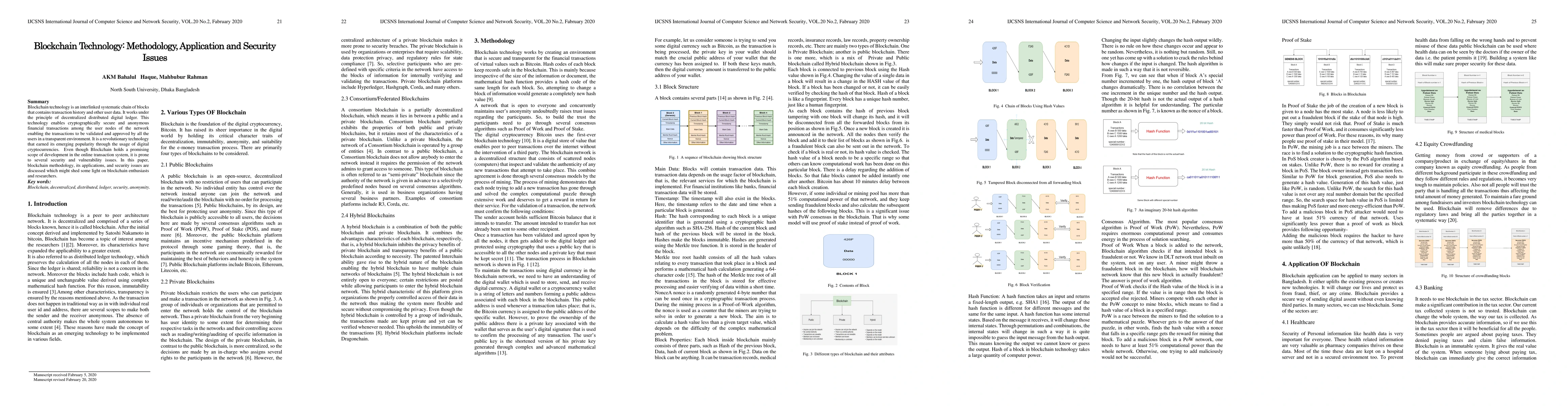 Blockchain technology is an interlinked systematic chain of blocks that contains transaction history and other user data. It works under the principle of decentralized distributed digital ledger. This technology enables cryptographically secure and anonymous financial transactions among the user nodes of the network enabling the transactions to be validated and approved by all the users in a transparent environment. It is a revolutionary technology that earned its emerging popularity through the usage of digital cryptocurrencies. Even though Blockchain holds a promising scope of development in the online transaction system, it is prone to several security and vulnerability issues. In this paper, blockchain methodology, its applications, and security issues are discussed which might shed some light on blockchain enthusiasts and researchers.