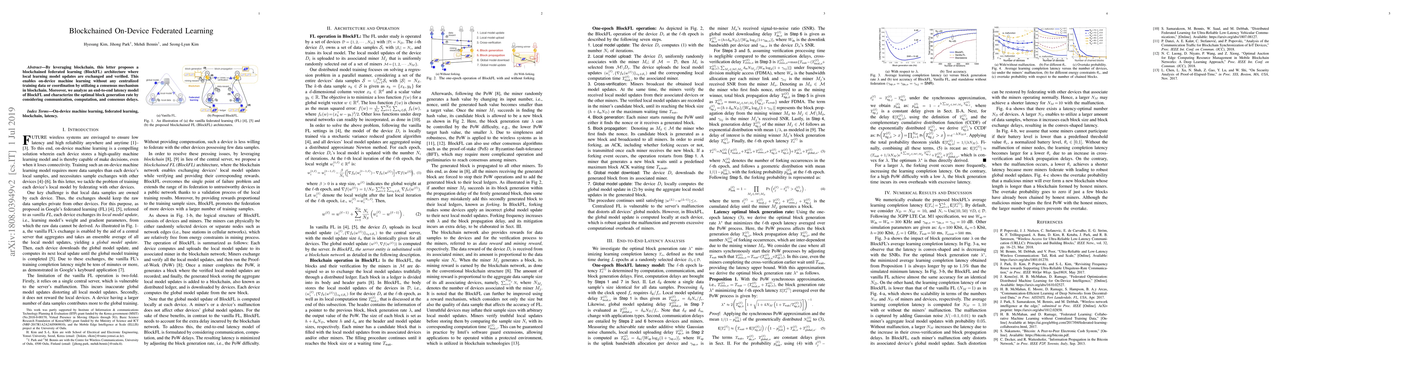 This paper proposes BlockFL, a blockchain-based federated learning architecture that enables on-device machine learning through decentralized consensus, eliminating the need for centralized data or coordination. The study also analyzes BlockFL's latency and determines the optimal block generation rate for minimizing delays.