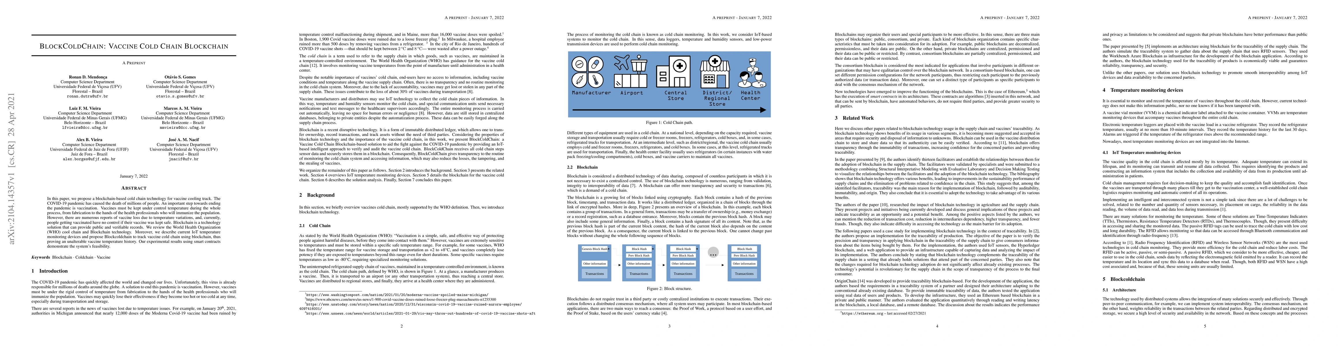 The paper proposes BlockColdChain, a blockchain-based solution to track vaccine temperature during the cold chain process, ensuring public and verifiable records to prevent vaccine loss due to temperature variations. Experimental results demonstrate the system's feasibility using smart contracts.