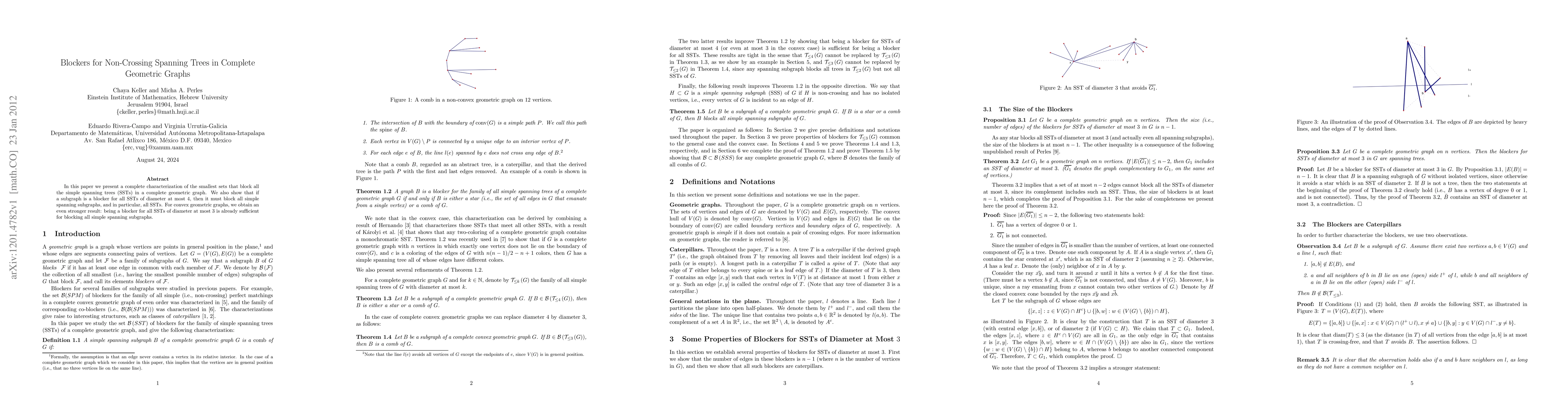 In this paper we present a complete characterization of the smallest sets that block all the simple spanning trees (SSTs) in a complete geometric graph. We also show that if a subgraph is a blocker for all SSTs of diameter at most 4, then it must block all simple spanning subgraphs, and in particular, all SSTs. For convex geometric graphs, we obtain an even stronger result: being a blocker for all SSTs of diameter at most 3 is already sufficient for blocking all simple spanning subgraphs.