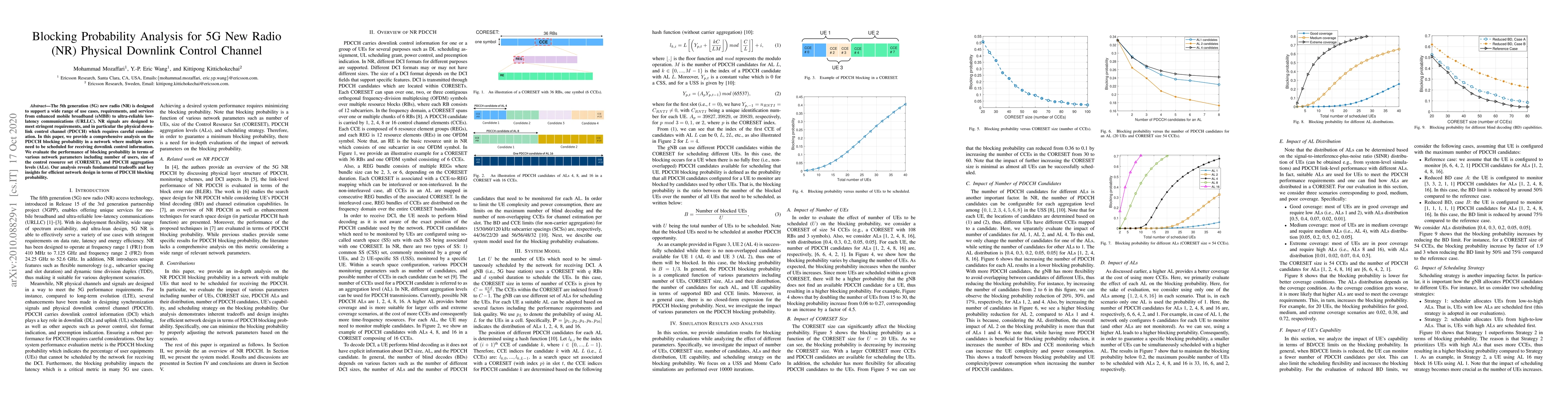 This paper analyzes the blocking probability of the 5G NR physical downlink control channel (PDCCH) under various network conditions, including user numbers, control resource set sizes, and PDCCH aggregation levels. The findings provide critical insights into optimizing network design to minimize PDCCH blocking probability.