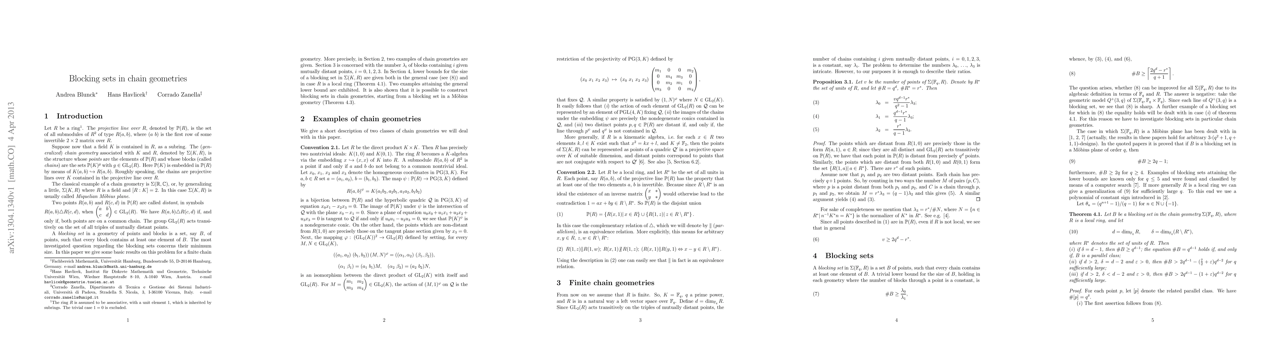 This paper explores blocking sets in chain geometries, determining the minimum size required for these sets to exist. Basic results on this topic are presented.