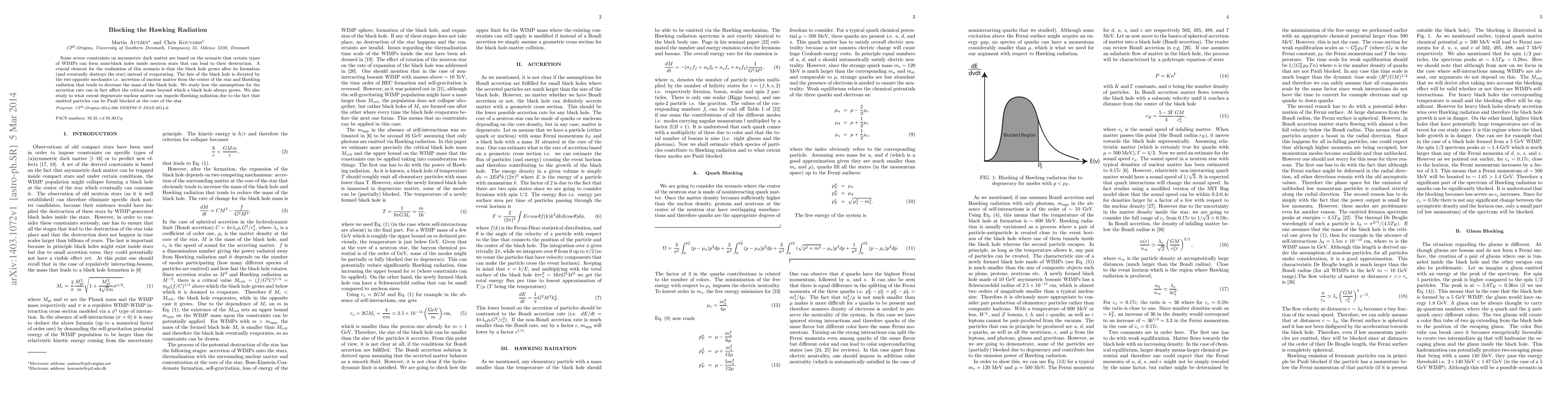 Some severe constraints on asymmetric dark matter are based on the scenario that certain types of WIMPs can form mini-black holes inside neutron stars that can lead to their destruction. A crucial element for the realization of this scenario is that the black hole grows after its formation (and eventually destroys the star) instead of evaporating. The fate of the black hole is dictated by the two opposite mechanics i.e. accretion of nuclear matter from the center of the star and Hawking radiation that tends to decrease the mass of the black hole. We study how the assumptions for the accretion rate can in fact affect the critical mass beyond which a black hole always grows. We also study to what extent degenerate nuclear matter can impede Hawking radiation due to the fact that emitted particles can be Pauli blocked at the core of the star.